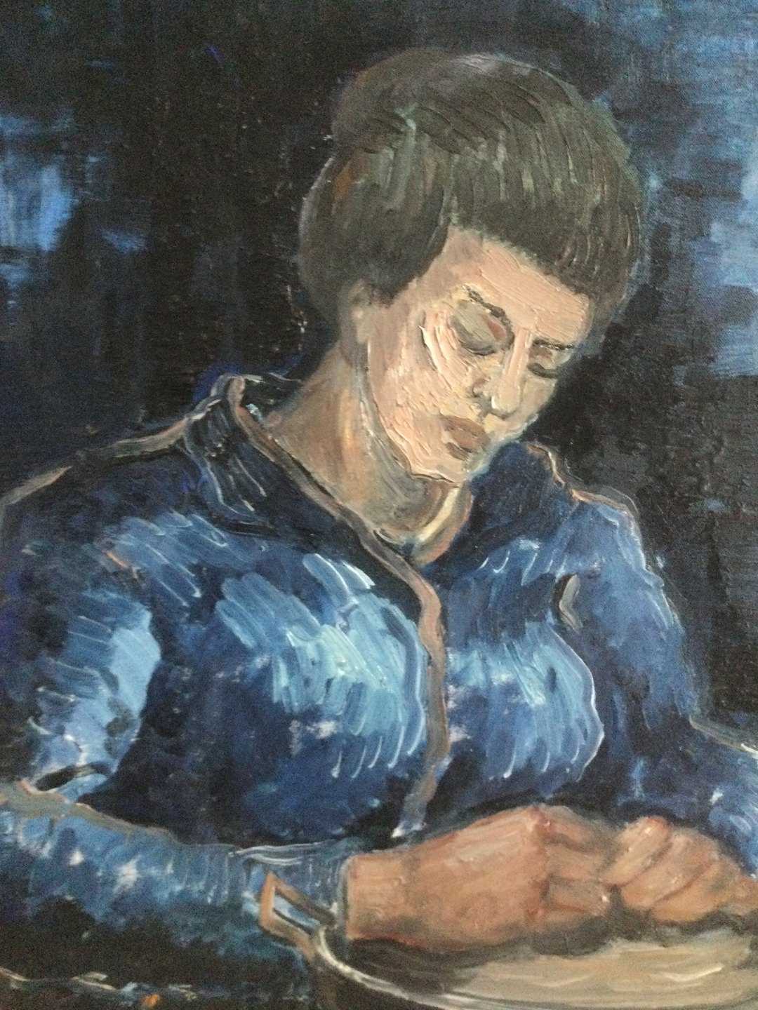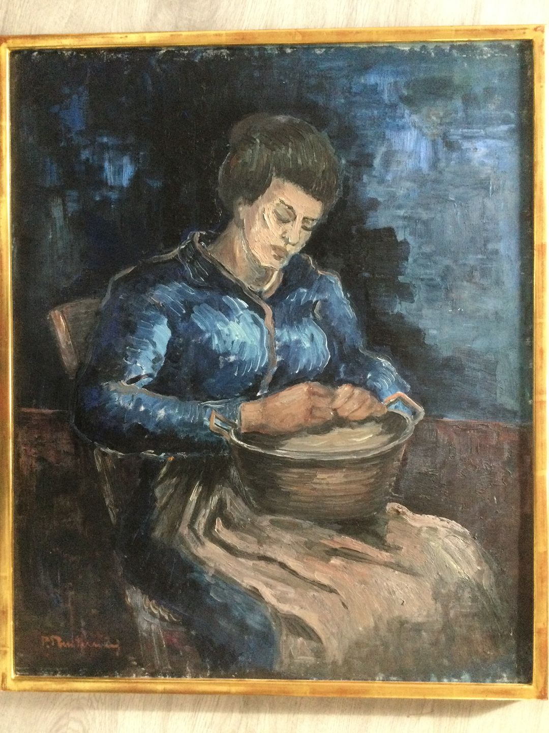 Text available in Danish: Maleri af Patrik Reutersvärd - Kvinde der udfører husligt arbejde.