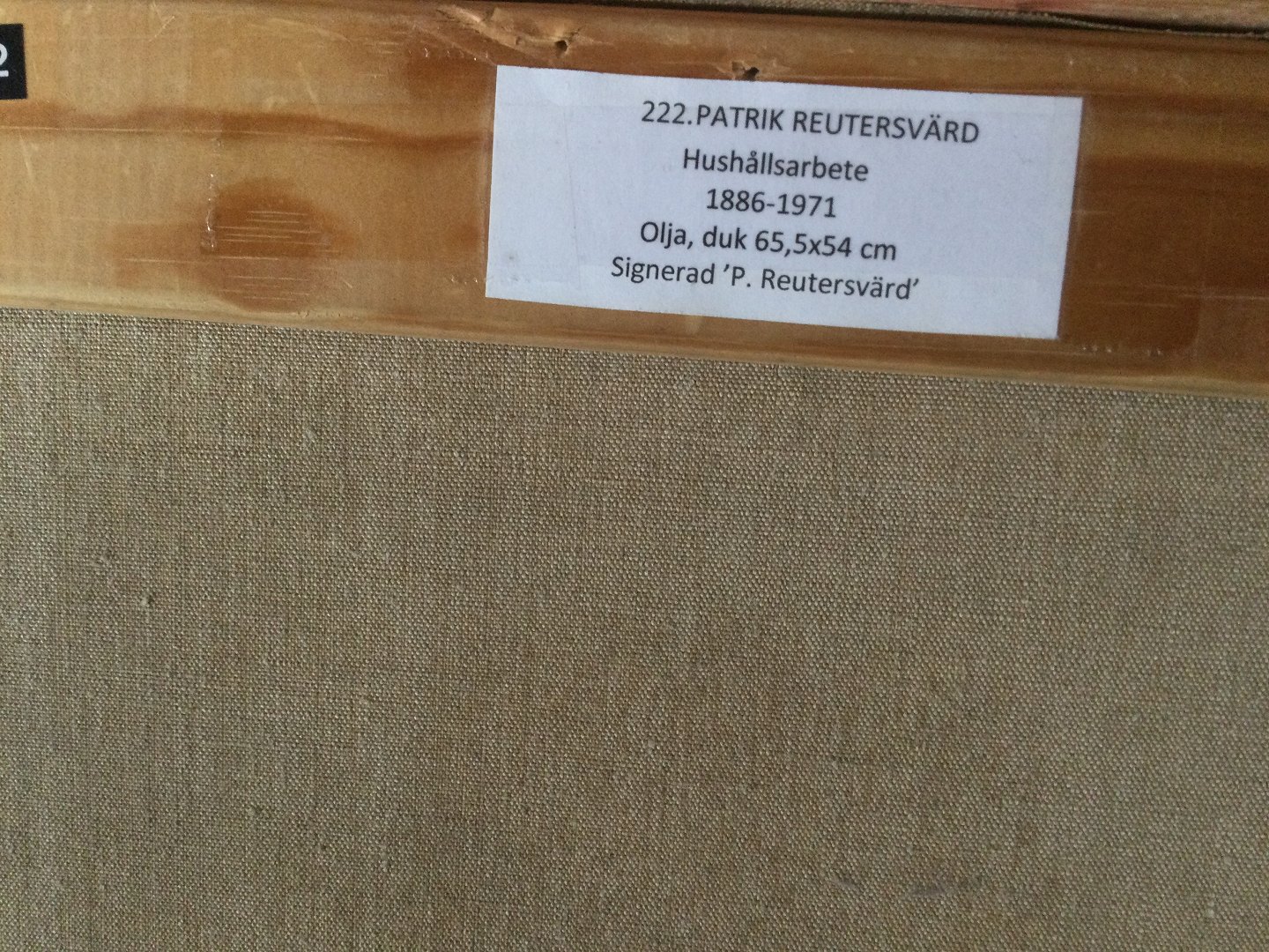 Bagpå udstillingsmærkat . "Hushållsarbete"