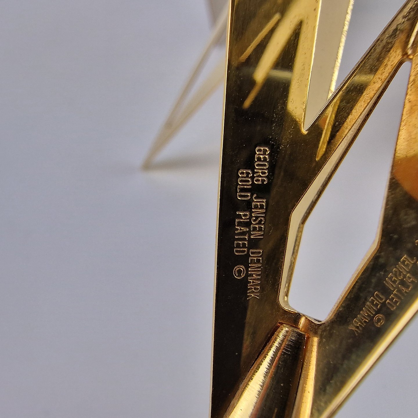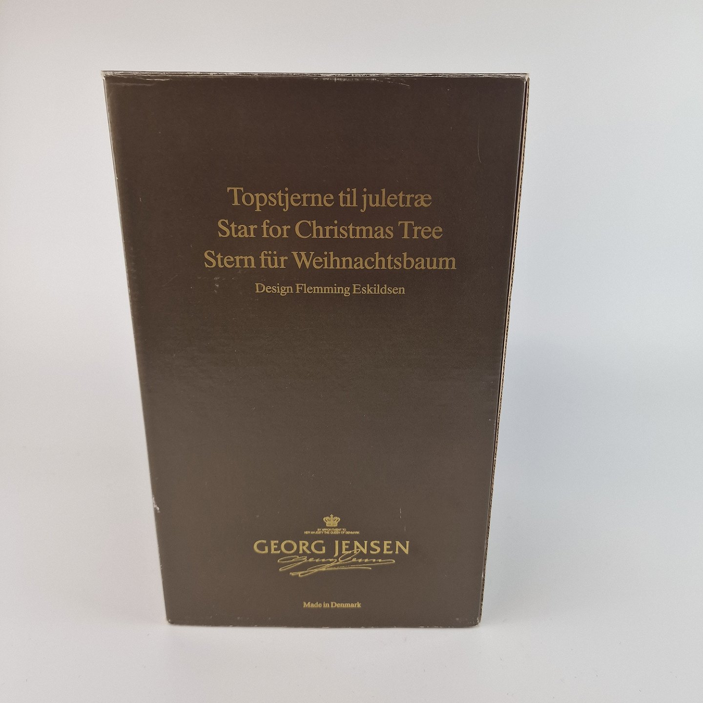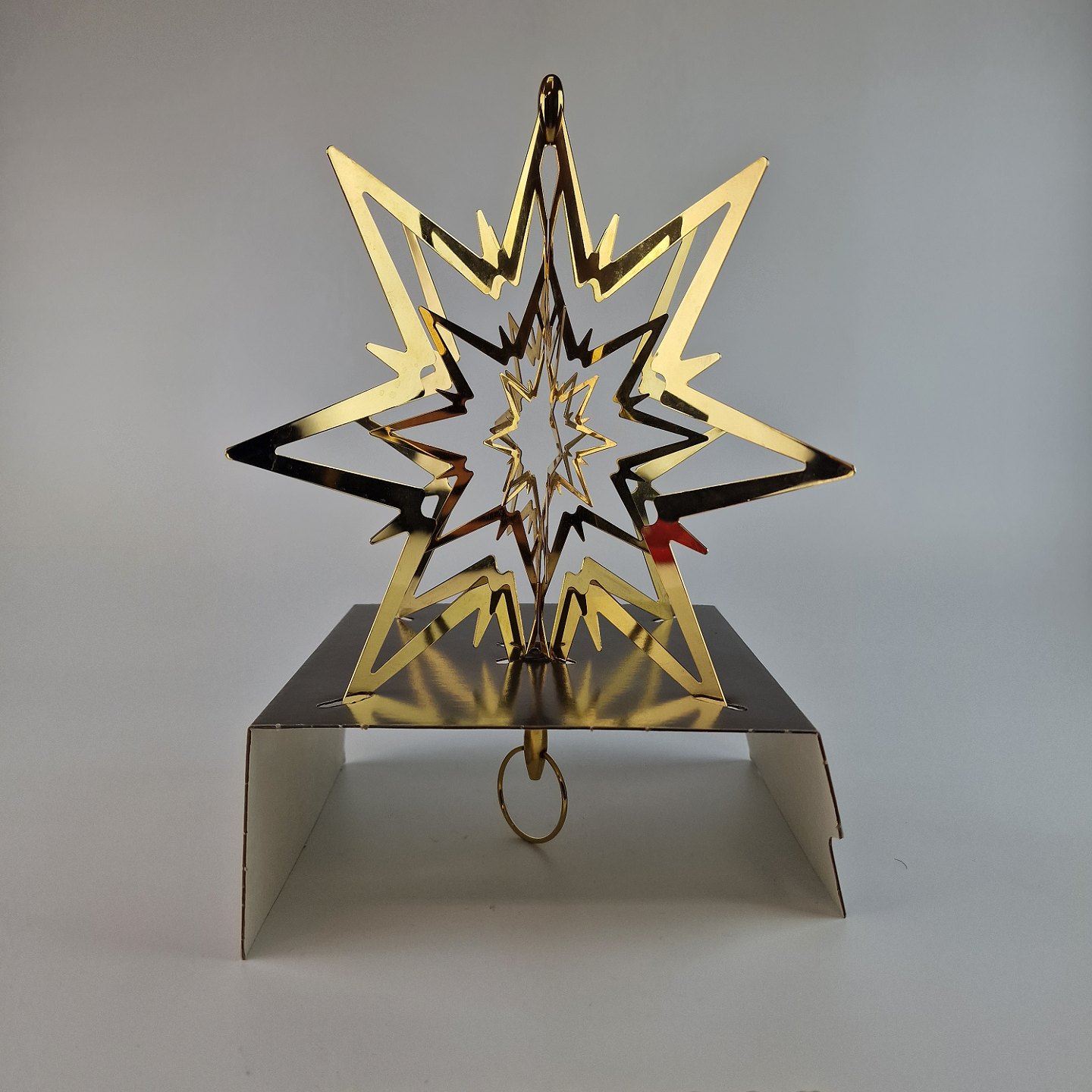 Juletræstjerne i messing belagt med 14 karat guld. Der medfølger rødt bånd til ophæng. Leveres i original æske. Model Stor