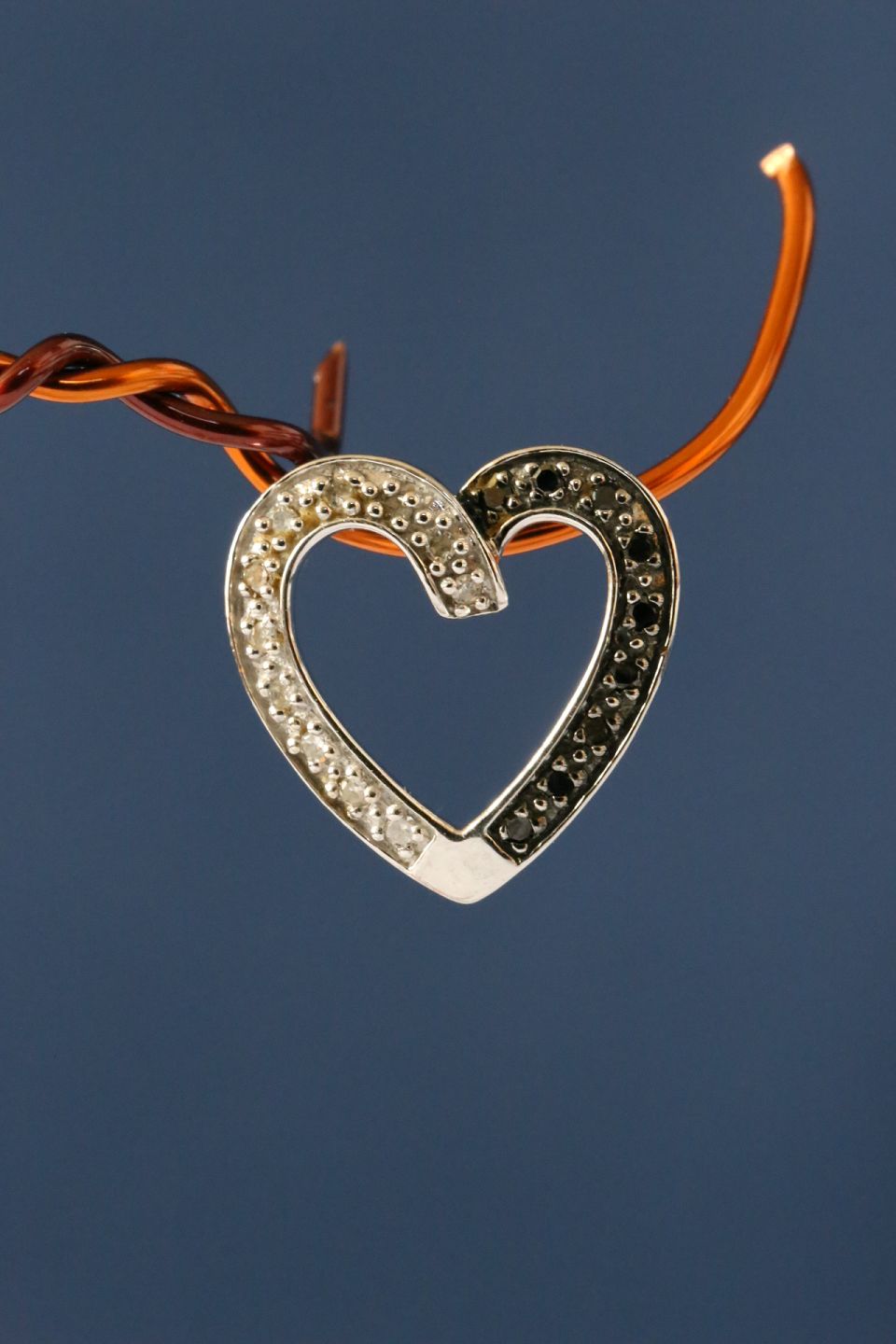 Flot hjerteformet vedhæng, der med en mørk og lys del udtrykker stærk dynamik. Vedhænget har to øskner bagpå, hvori det kan hænge i kæden. Vedhænget er smedet med mange flotte detaljer, hvilket gør det levende.