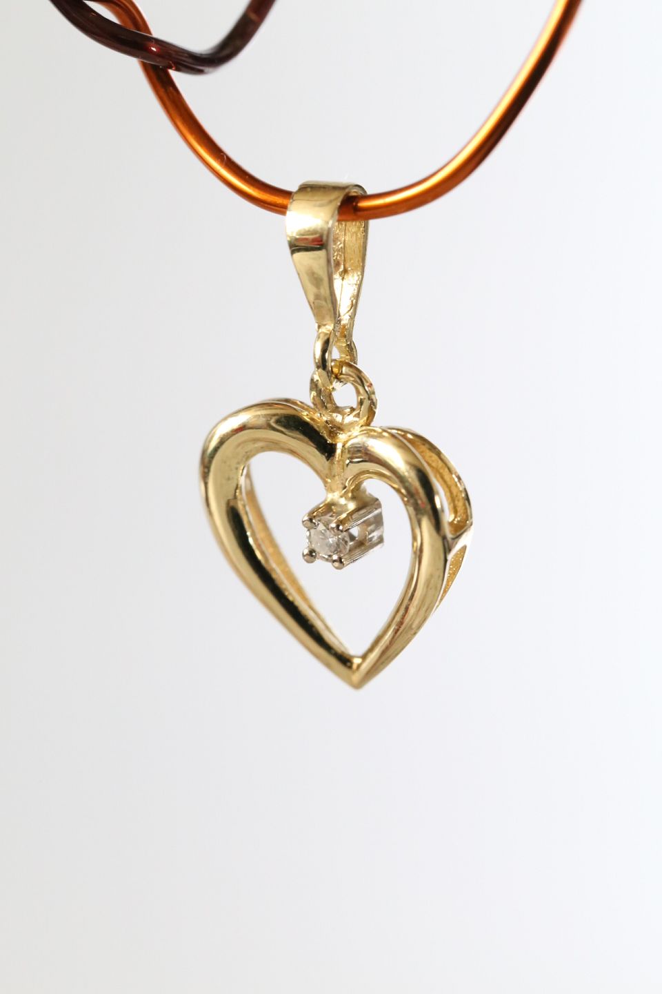 Hjerteformet vedhæng i 14 karat guld, med en Brillant. Stemplet 585. Meget eksklusivt.