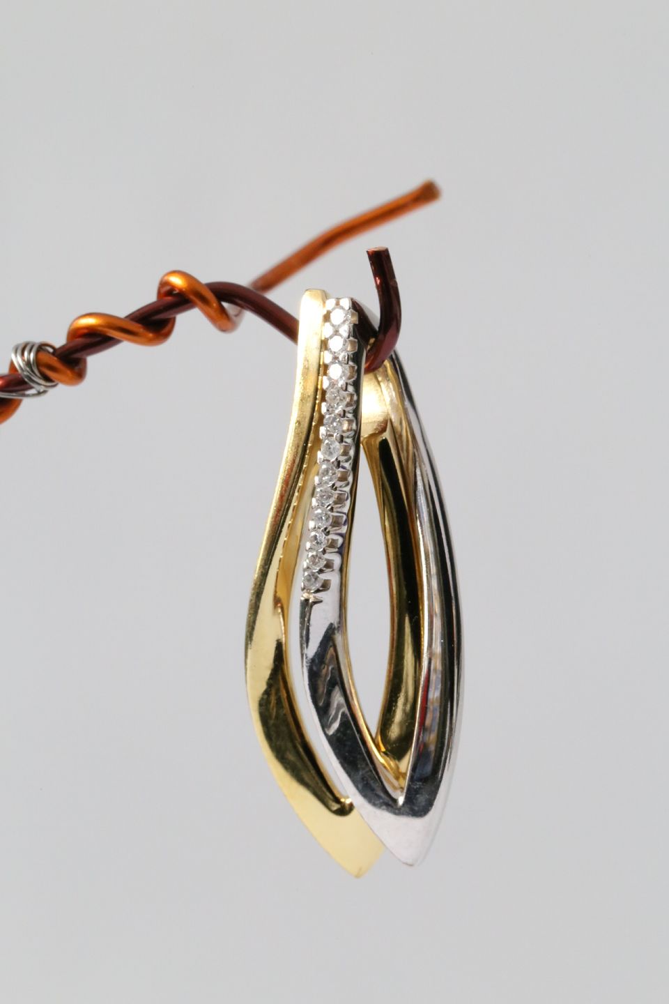 Dette flotte og store vedhæng, er udført med sans for de mindste detaljer. Vedhænget er smedet af hvid- og rødguld, i flot tidløs buet form. De indlagte brillanter giver vedhænget en flot glans, der udstråler god stil og klasse. Da vedhænget er et af det større, kan det med fordel kombineres med en tykkere guldkæde.