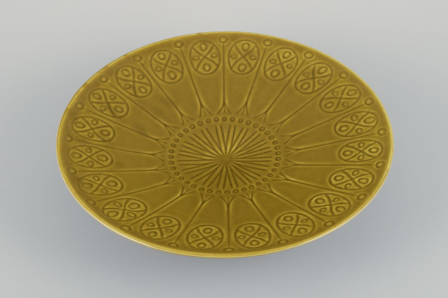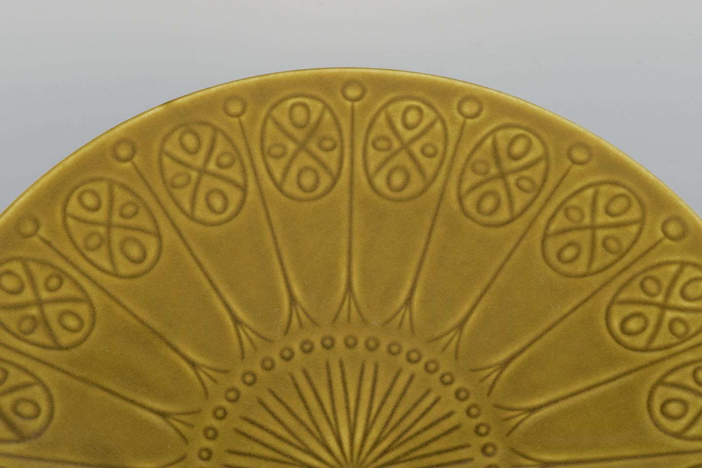 Geometrisk mønster. Grøngul glasur.
