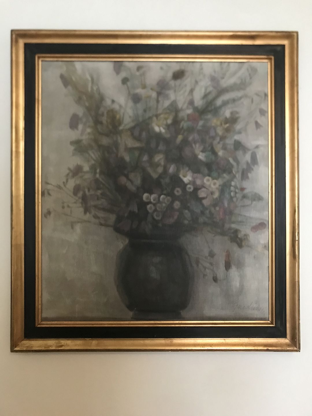 Vilde blomster i krukke. Maleri af professer Ejnar Nielsen 1872-1956 h 60 b 53.