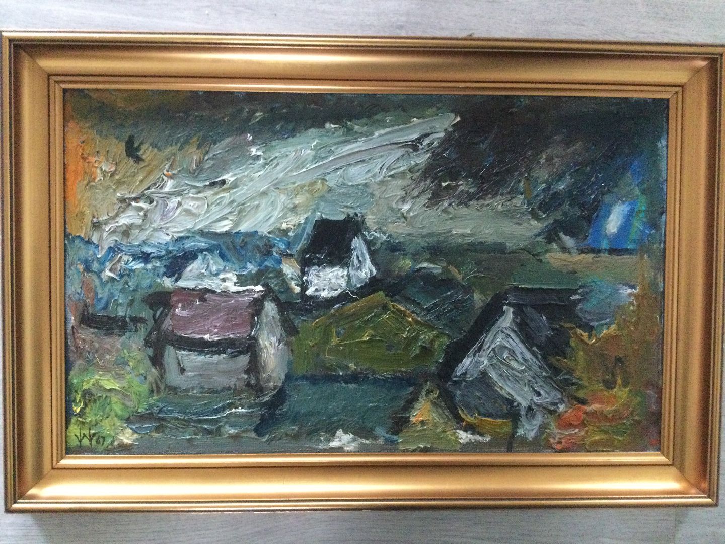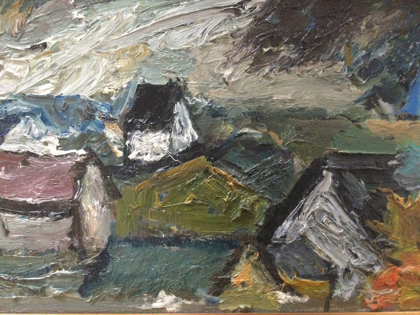 Maleri af William Hansen - Landskab med huse 1967.