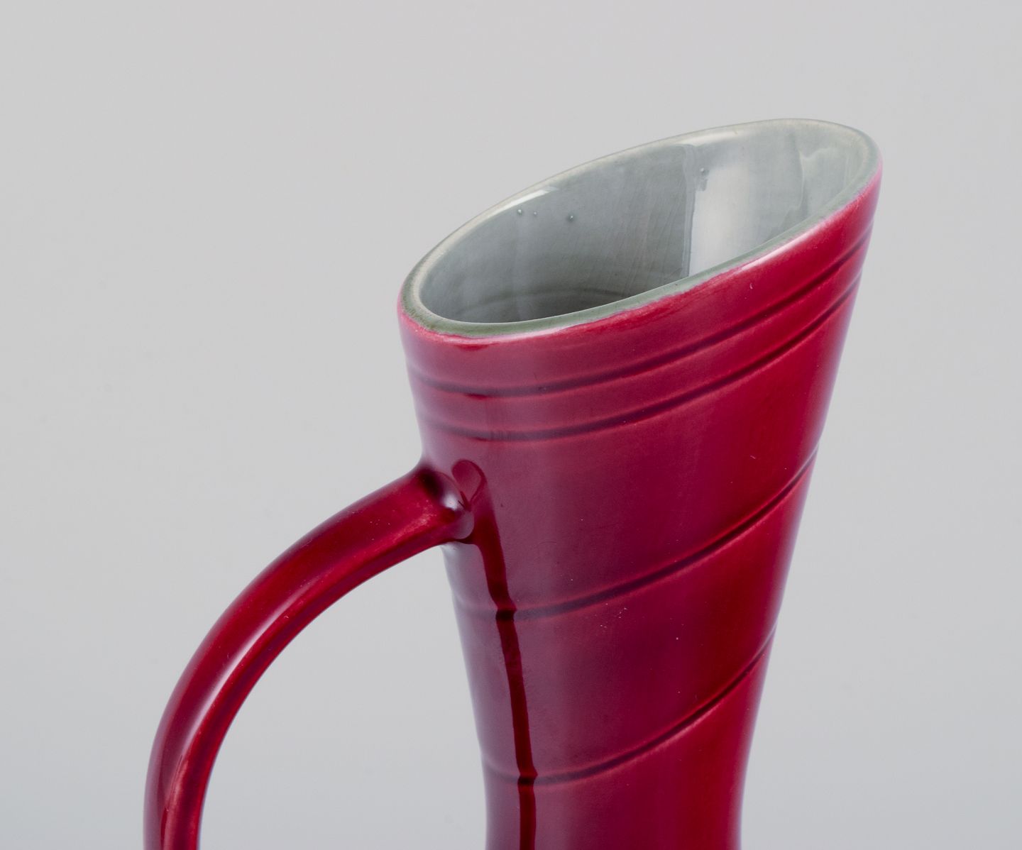 Carl Harry Stålhane (1920-1990) for Rörstrand. To kander og et fad i keramik. Bordeauxfarvet glasur.