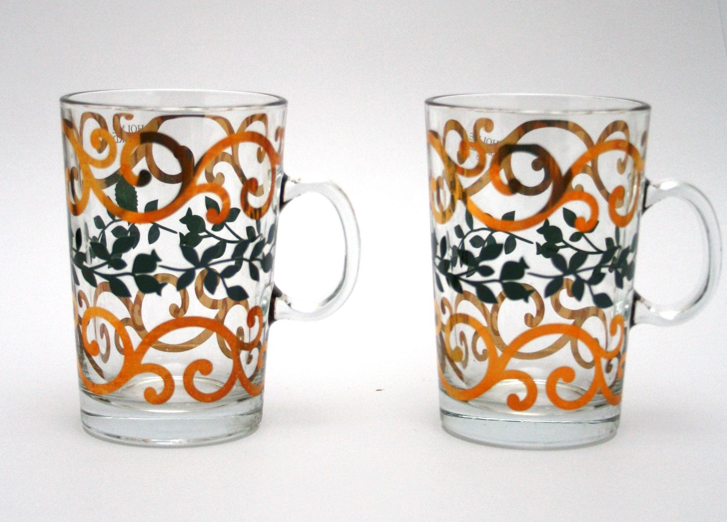 Holmegaard, Golden Christmas serien, Hot drink glas med hank. Designet af Dorthe og Peter Svarrer i 2006, udgået af produktion. Højde 11 cm. Sæt 2 stk. i originalæske. Pris: 200 kr. pr. sæt. Lager: 1 sæt
