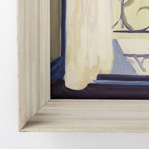 Maleri. 'Blomster i vinduet' med hvid ramme. Signeret.