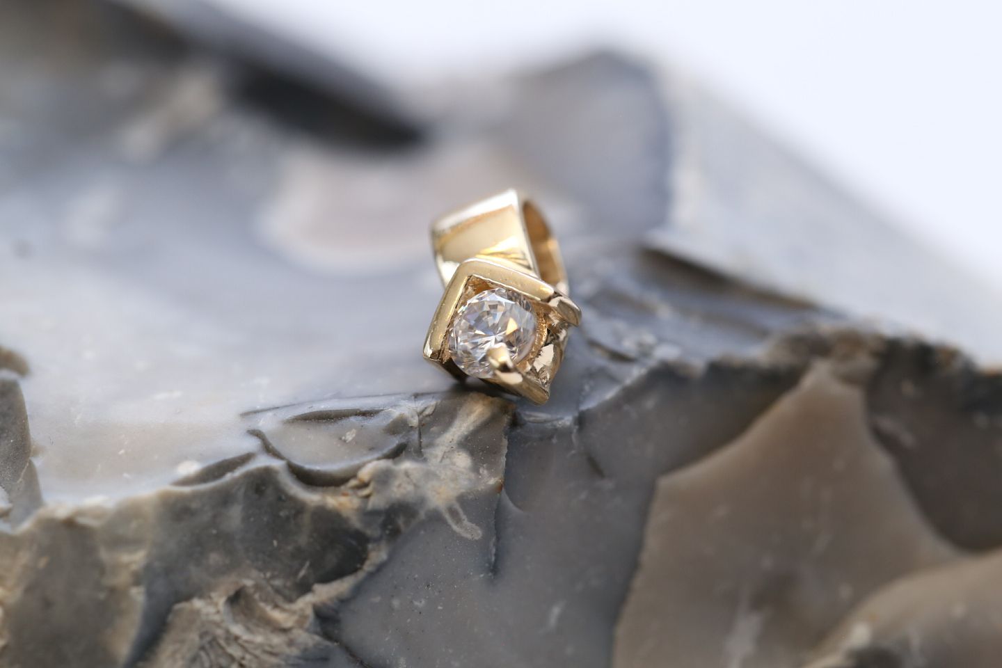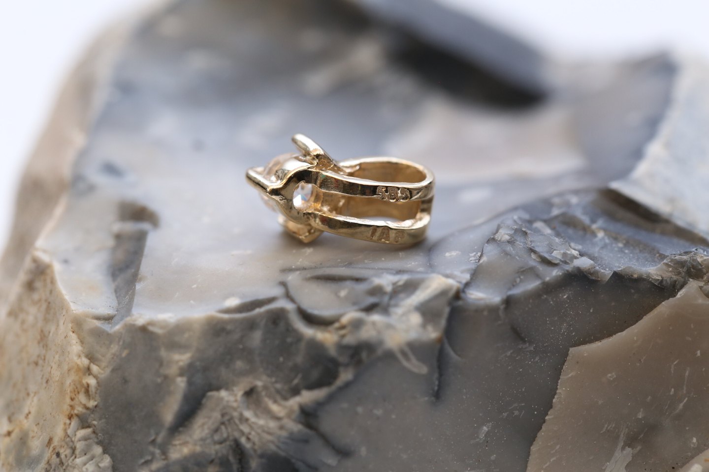 Vedhæng i 14 karat guld, med klar sten og tidløs design.