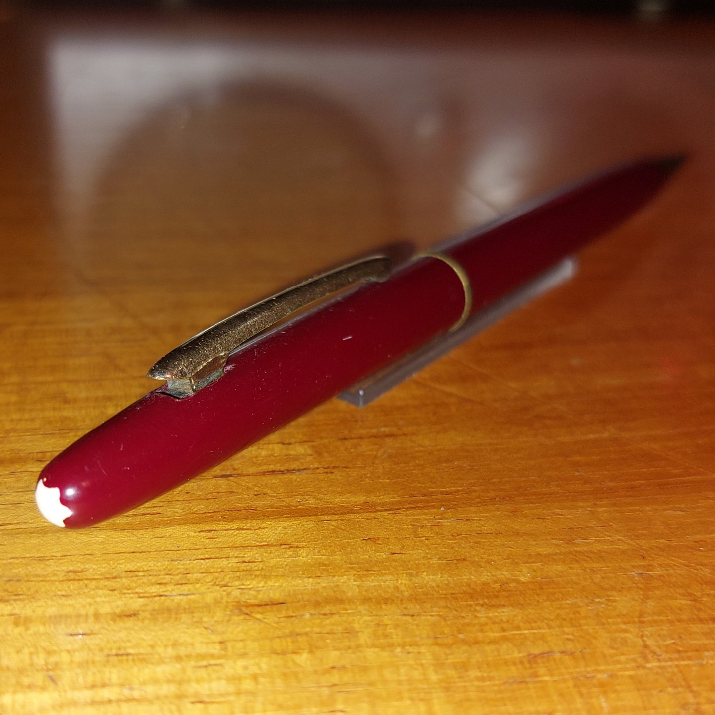 Long slim burgundy Montblanc No. 222 screw pencil. Model number engraved (see photo). Also engraved MONTBLANC above the belly belt. In good working condition.