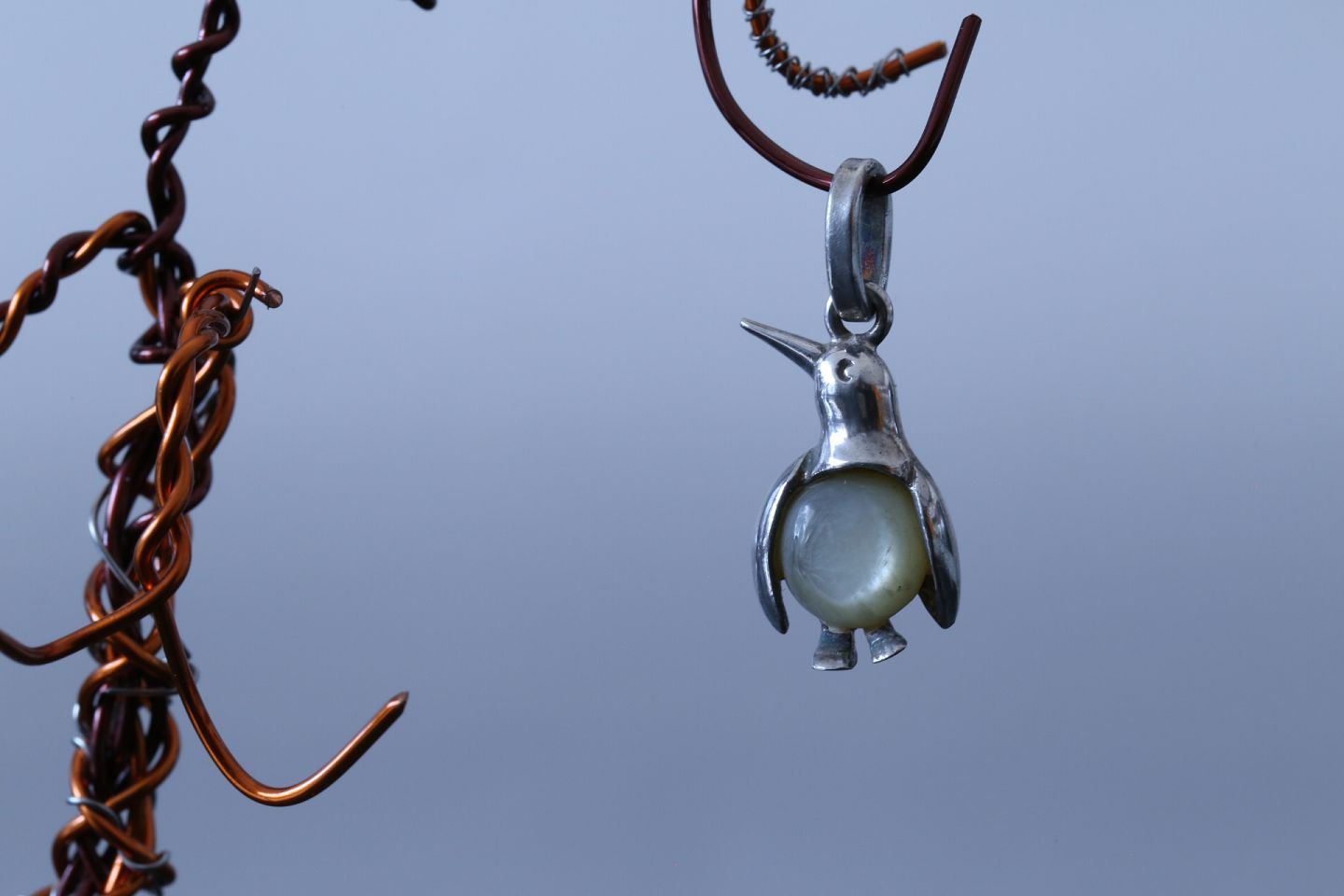 Flot og meget unikt vedhæng, udformet som en sød lille pingvin. Selve pingvinens krop, udgøres af en fin hvid månesten. Kombinationen af sølv og den hvide sten, gør dette lille vedhæng ekstra flot. Brug vedhænget sammen med en tynd sølvkæde, og få et flot halssmykke, der kan bæres til nærmest alle lejligheder.