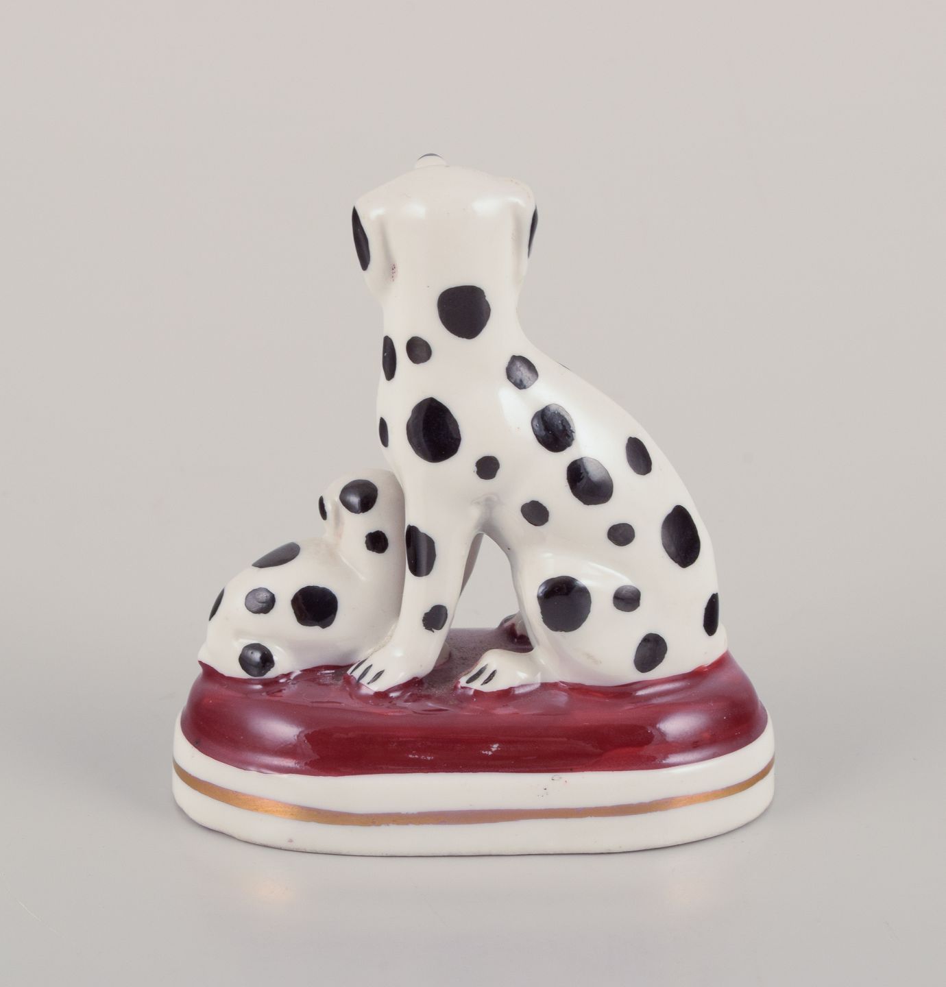 Tre dele fransk og engelsk porcelæn bestående af Royal Crown Derby miniaturekrus, miniature porcelænsfigur af to dalmatinere samt en hjerteformet lågæske.