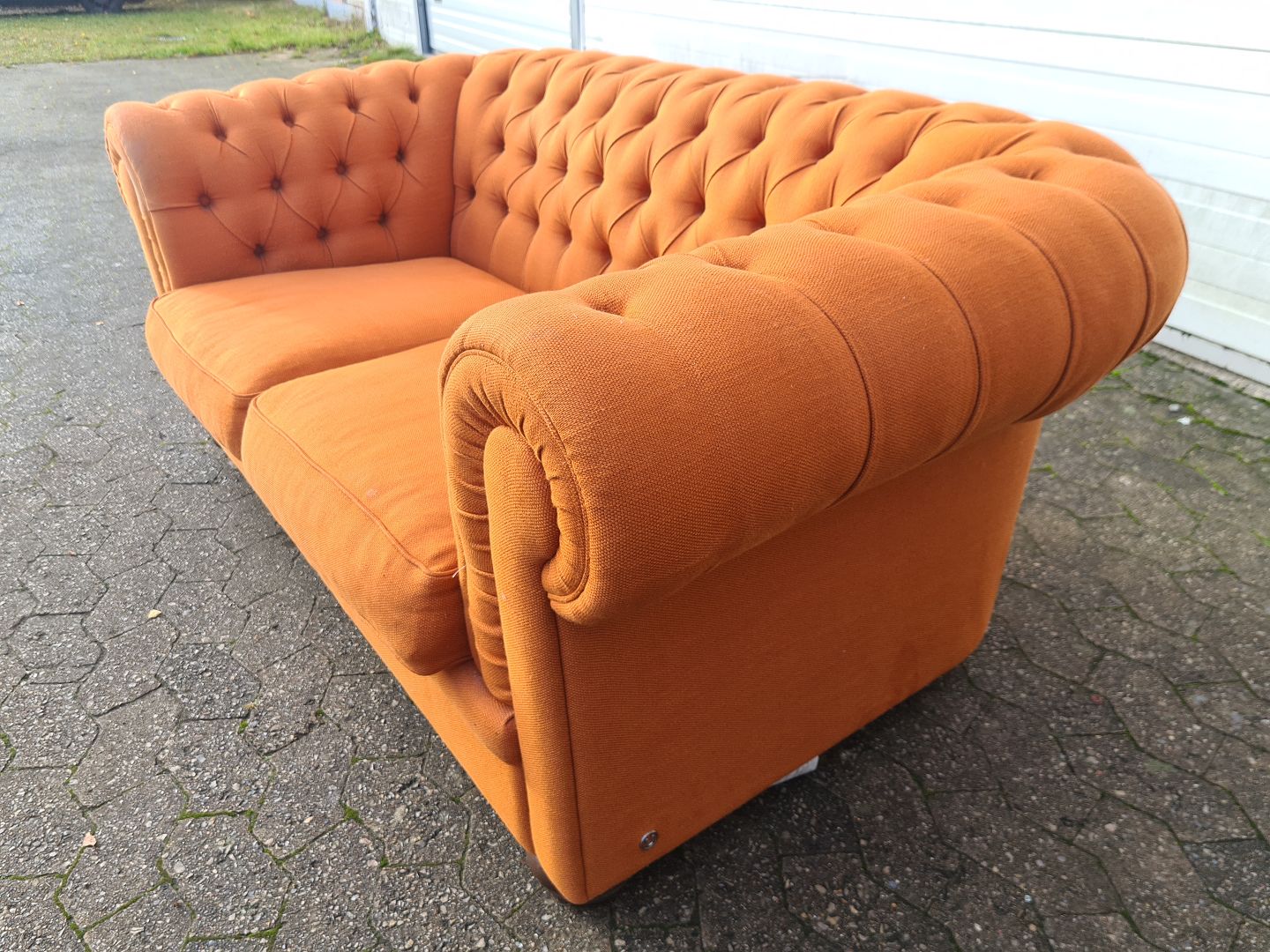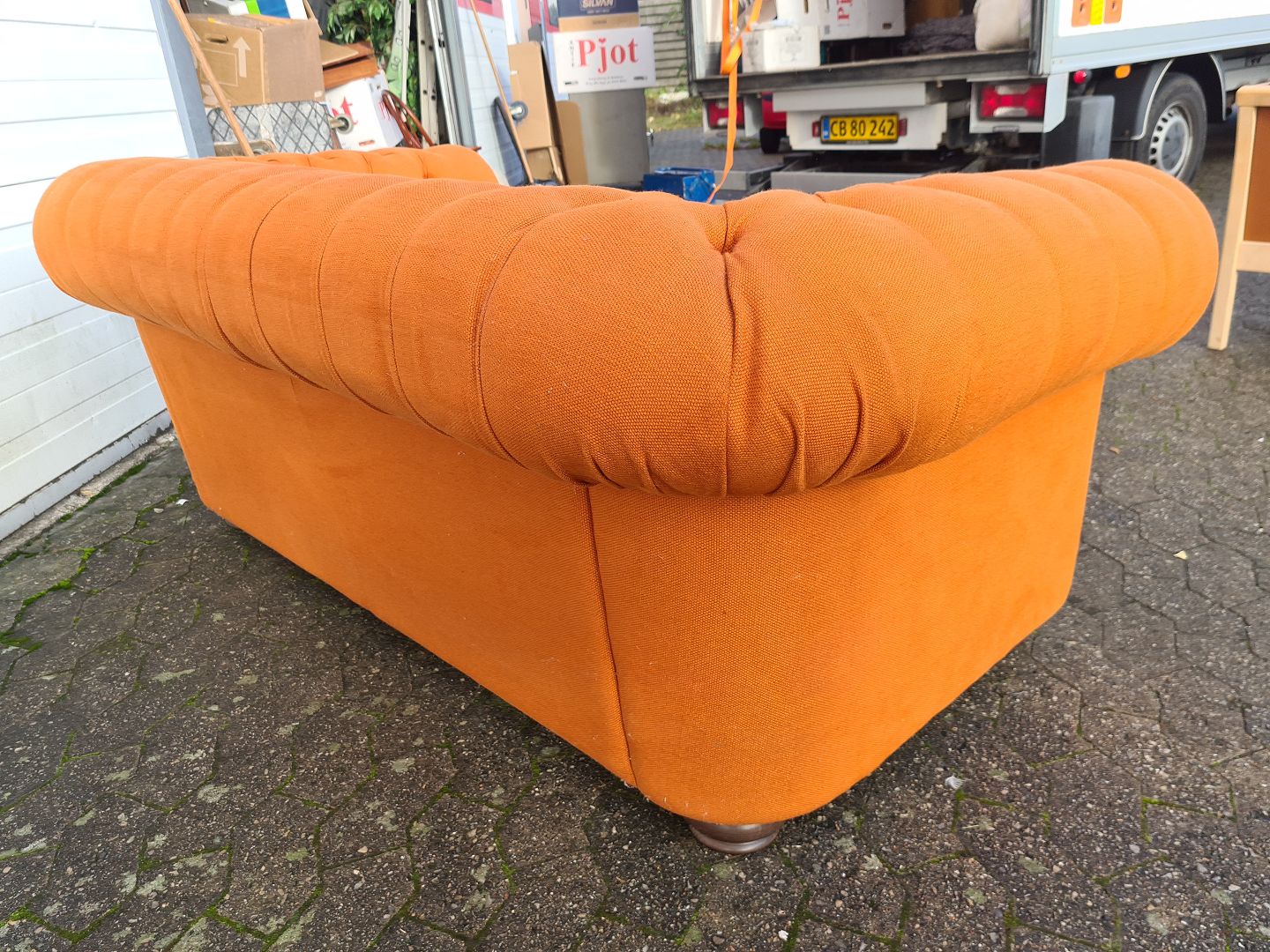 2 personers overpolstret sofa. Italiensk produceret. Fremstår ok velholdt dog med brugsspor på det ene armlæn. (billede)