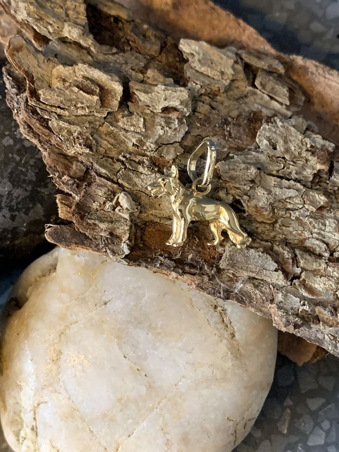 Vedhæng i 14 karat Guld, udformet som schæferhund.