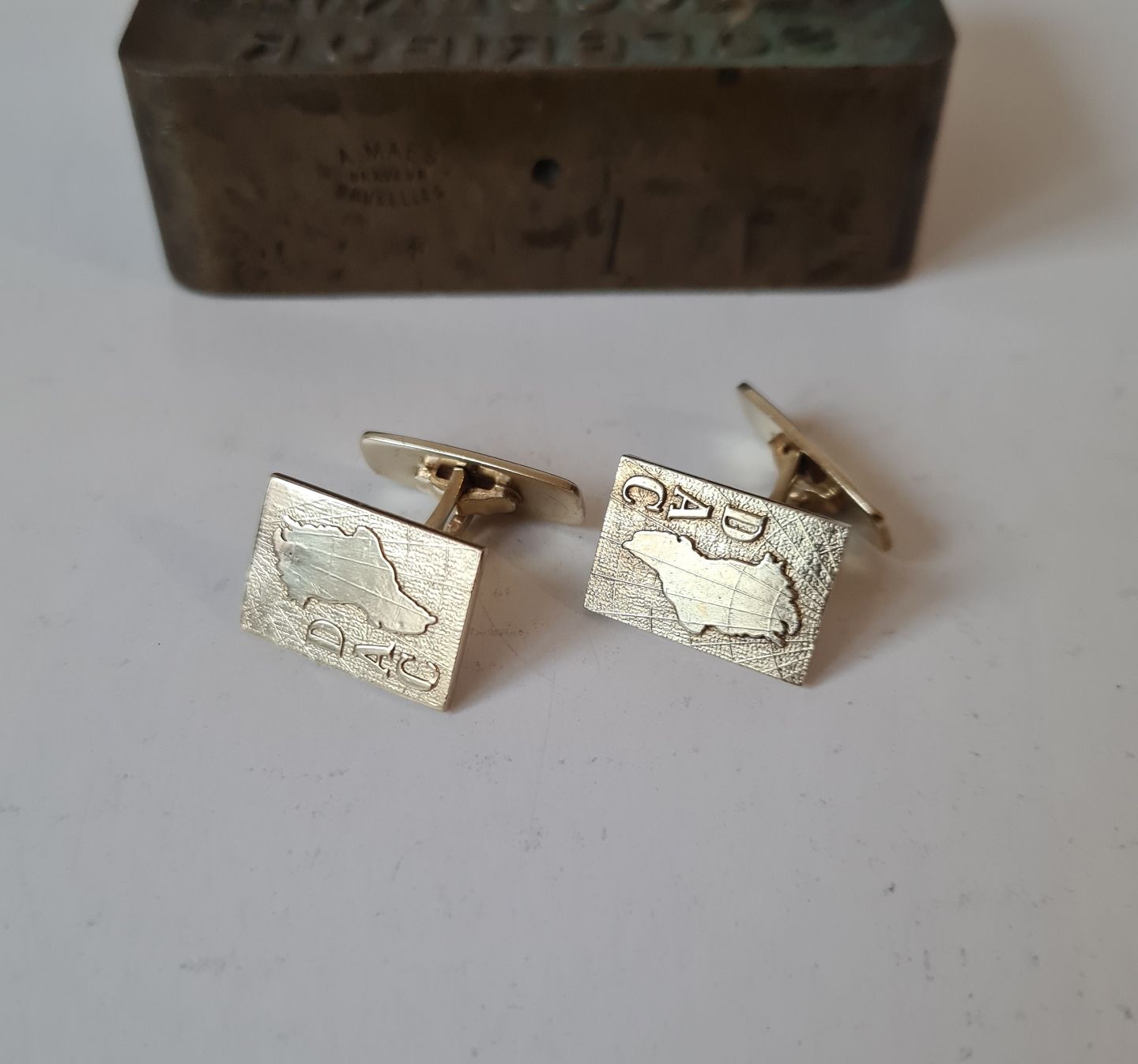 Par vintage manchetknapper i forgyldt sterlingsølv dekoreret med Grønland samt logo DAC
