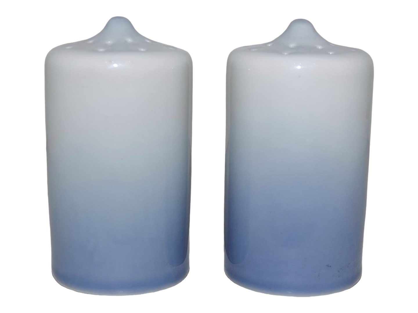 Bing & Grøndahl Blå Tone Jernporcelæn, saltbøsse og peberbøsse med logo fra Copenhagen Corner.