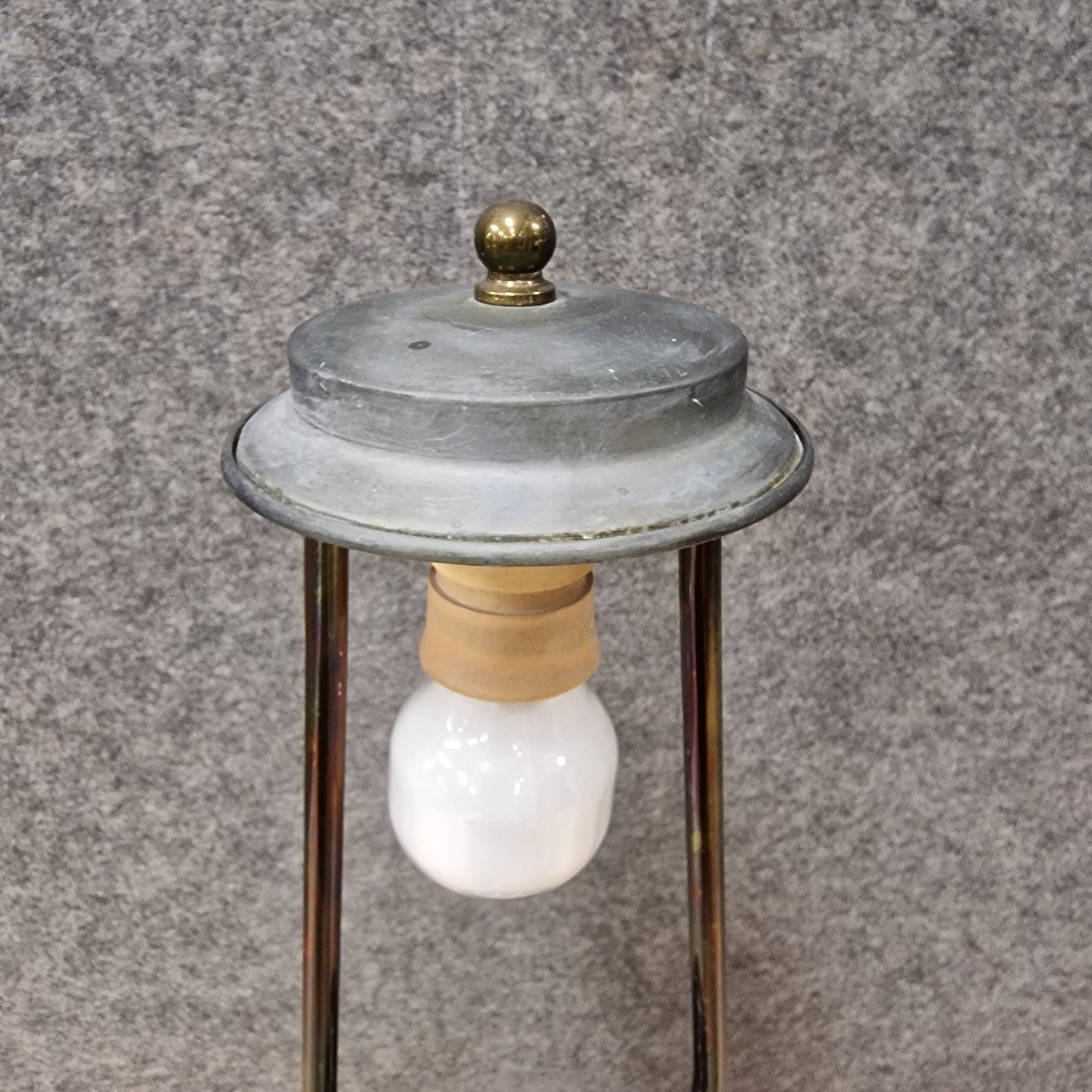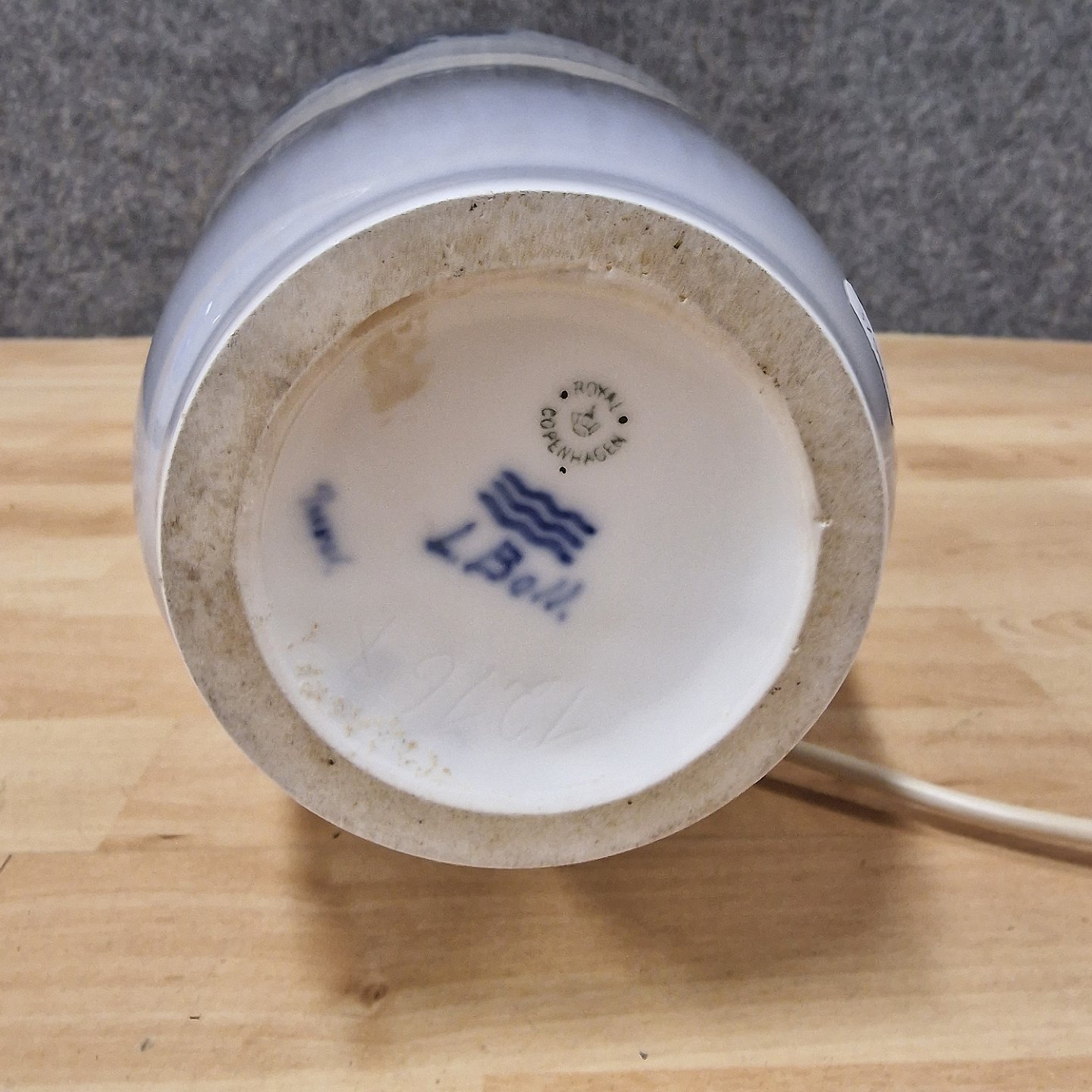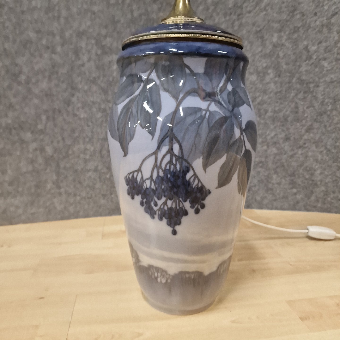 Bordlampe i grålige toner dekoreret med hyldebær på gren