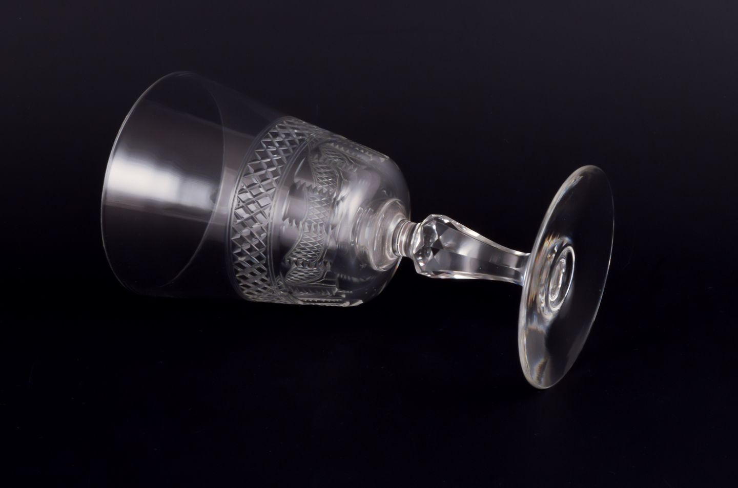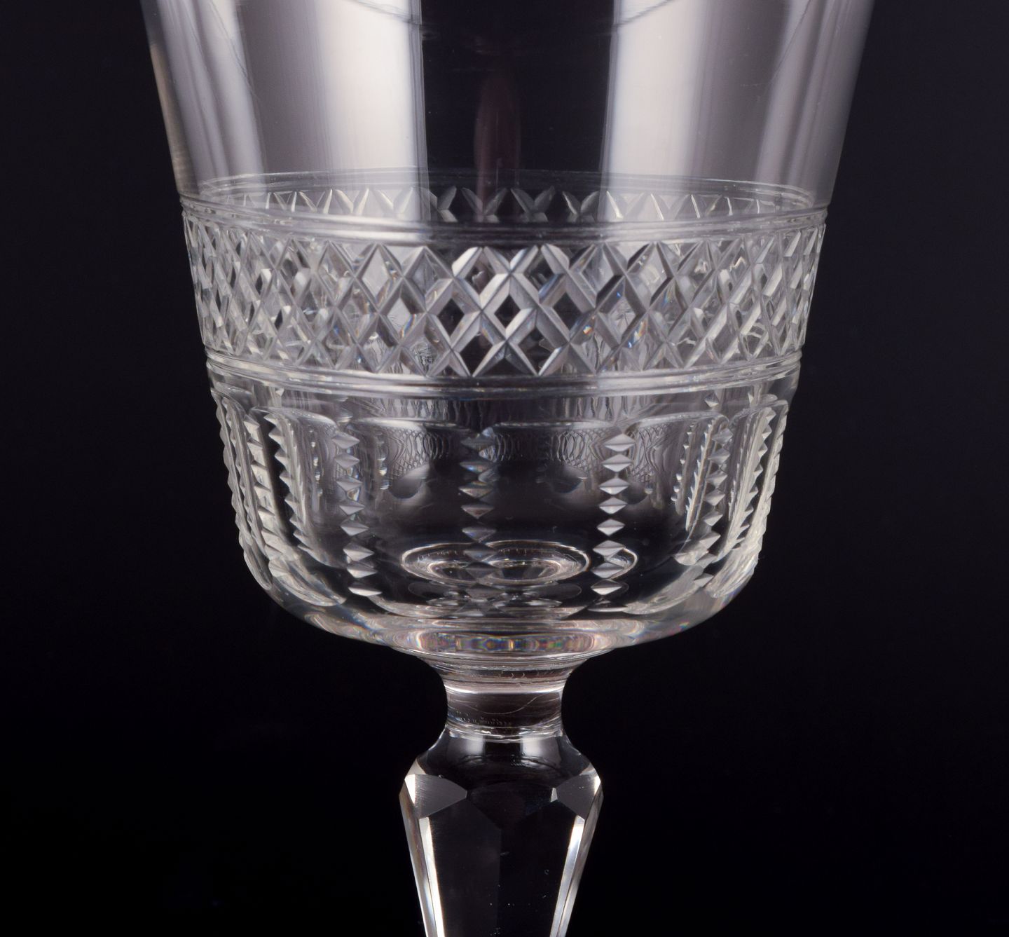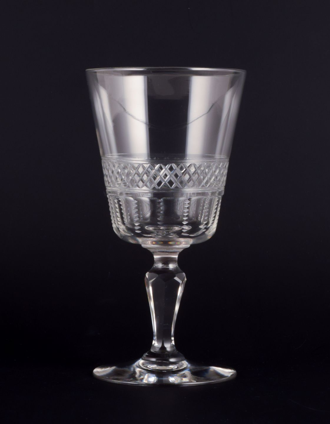 A set of six mouth-blown French red wine glasses in crystal glass. Faceted. Handmade.