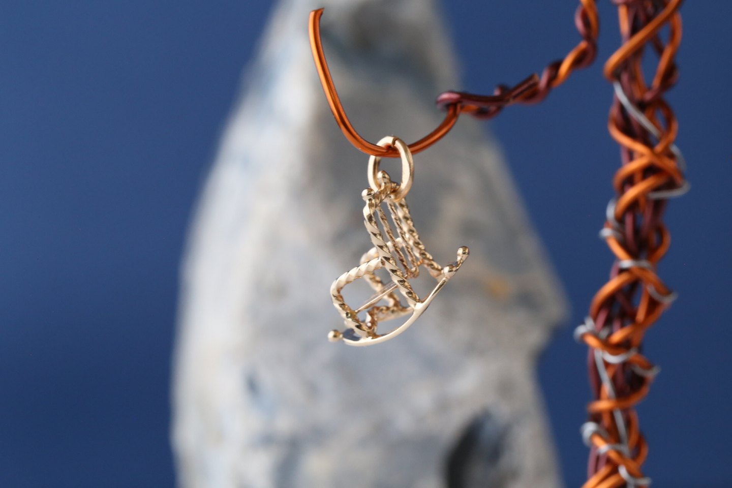Flot vedhæng i 14 karat guld. Vedhænget er udformet som en gyngestol. Et anderledes, men spændende motiv. Kan også bruges i kombination med andre vedhæng i et armbånd.