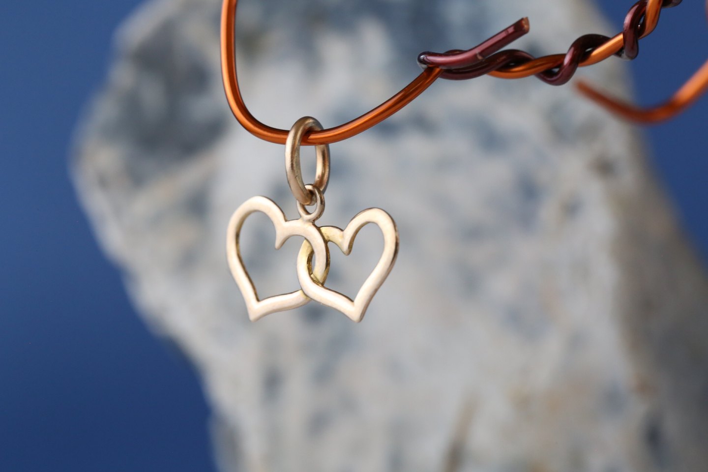 Dobbelt hjerte som vedhæng til halskæde, 14 karat guld, stemplet 585.