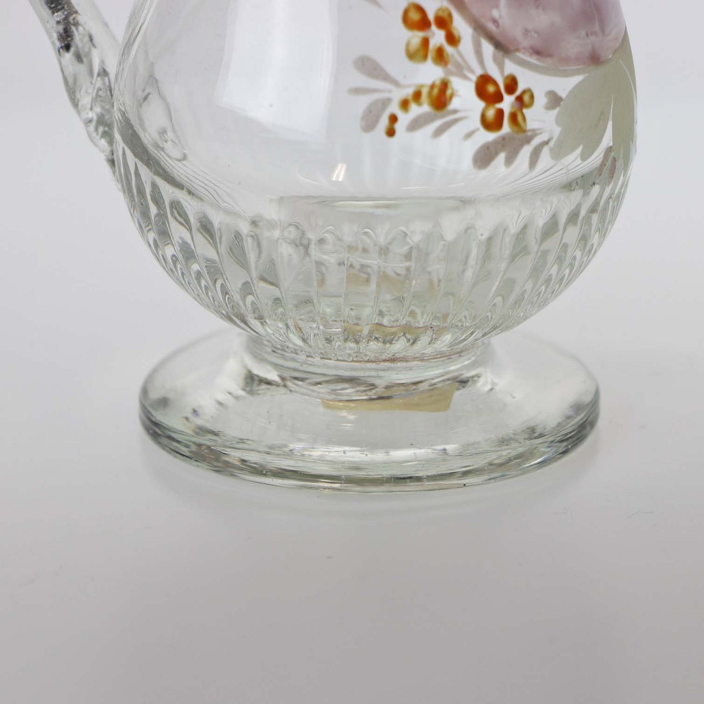 Glaskrus med emalje malet blomsterdekorationer og teksten Friendship