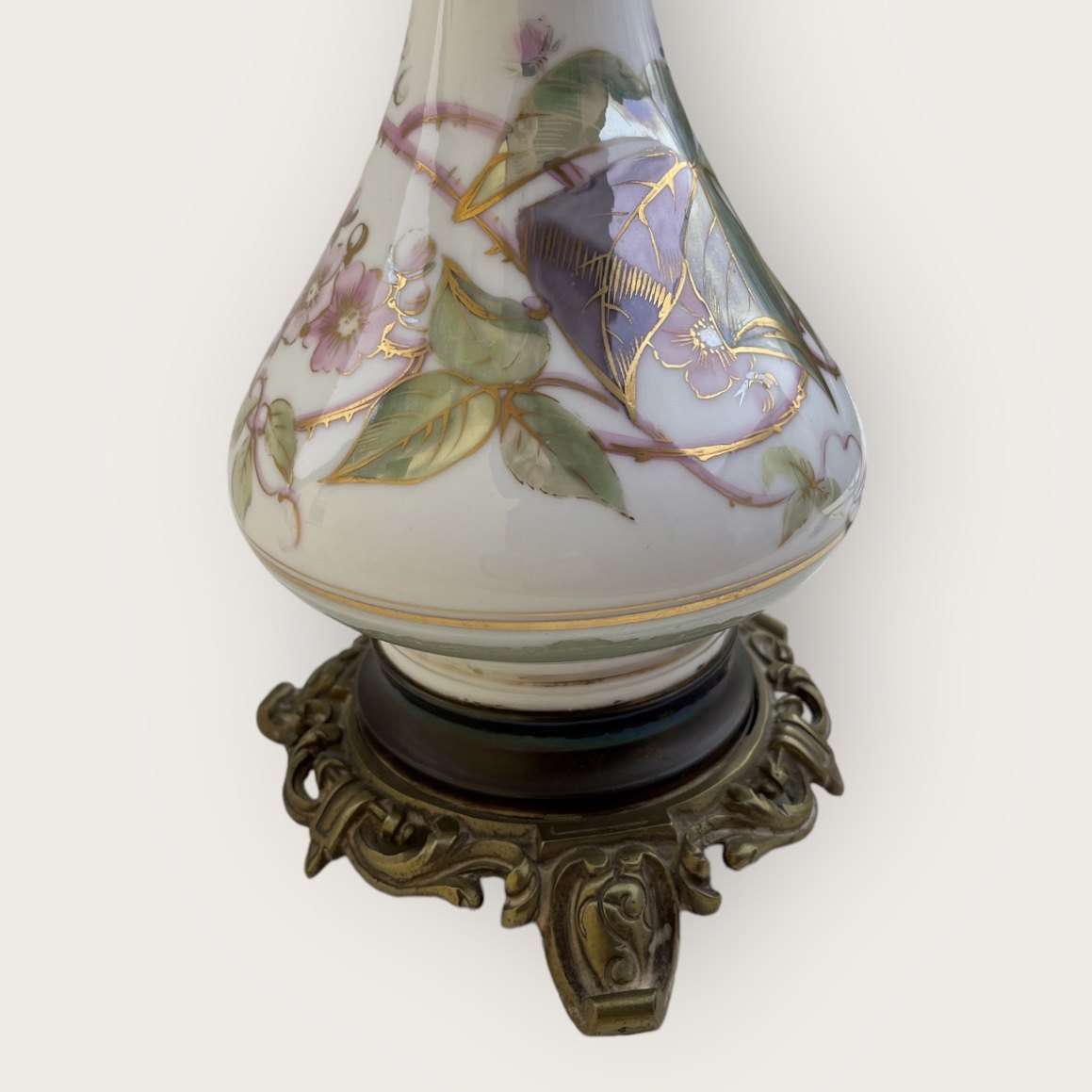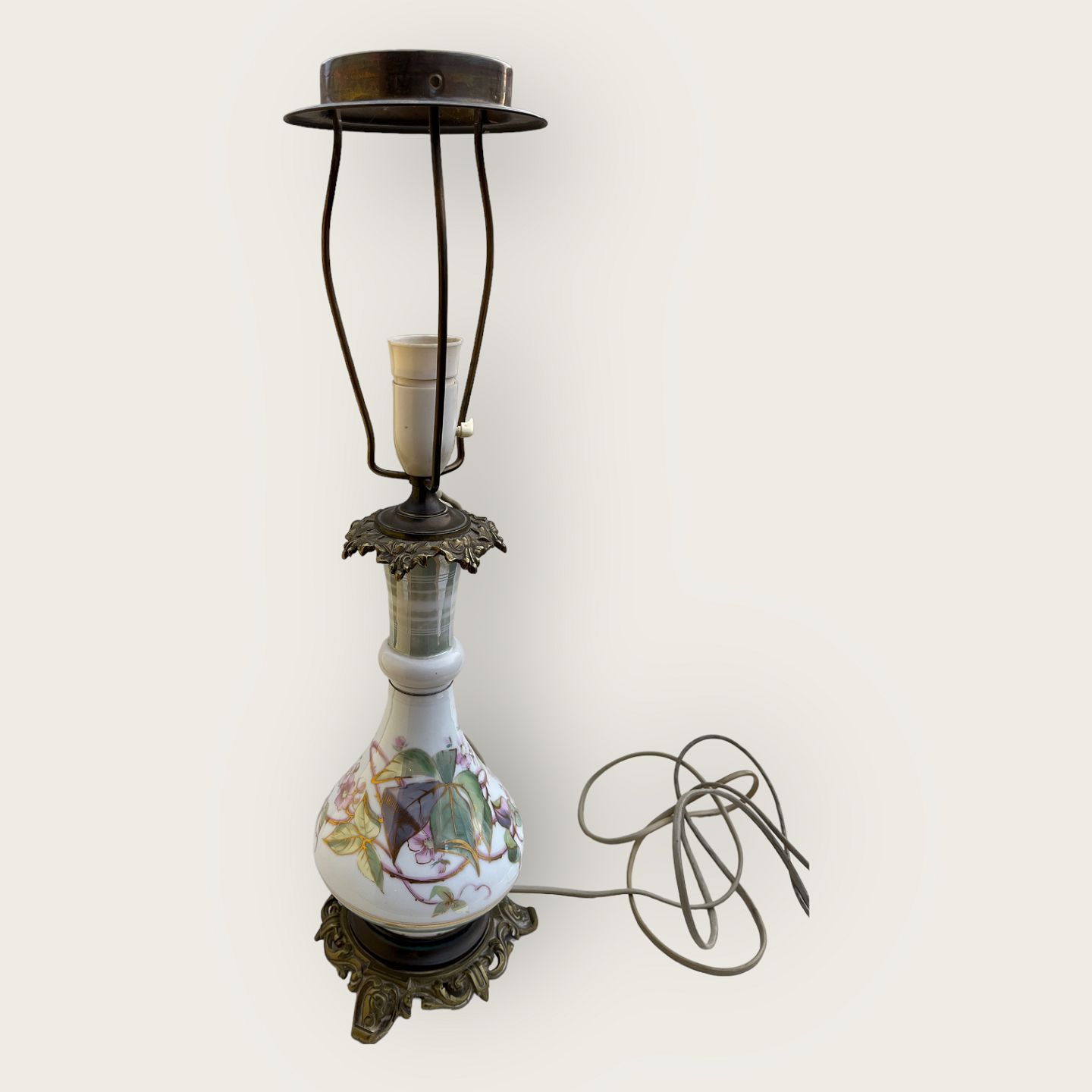 Porcelain table lamp, with flower decoration, 56cm high (incl. socket), 16cm in diameter *Nice condition*