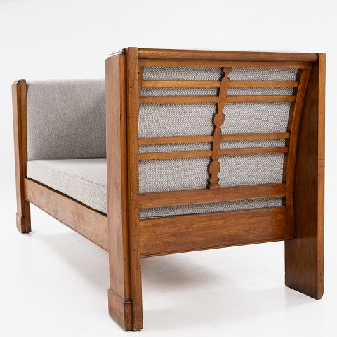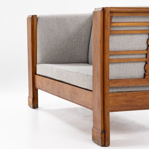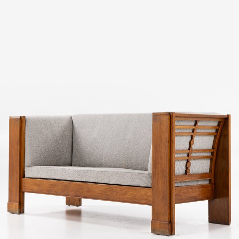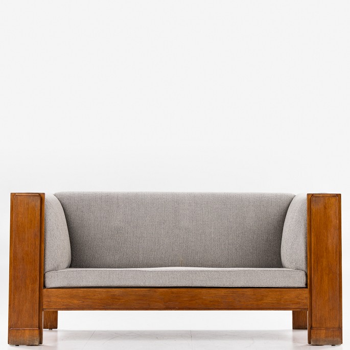 Nybetrukket sofa i Safire-tekstil (farve 008) med stel i patineret eg.