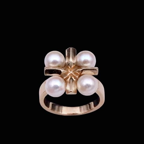 Bræmer-Jensen. Ring i 14k guld med perler.