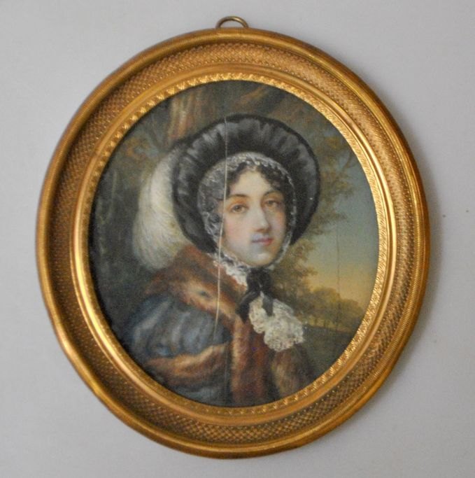 Ubekendt kunstner (19. årh): Portræt af ung kvinde. Miniature maleri.