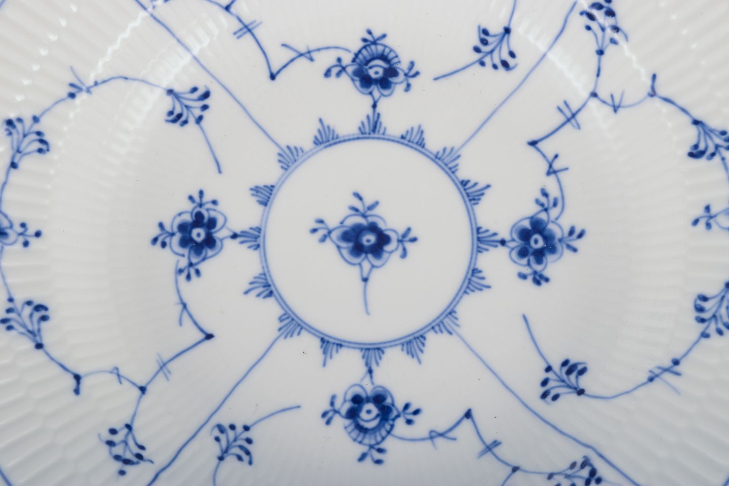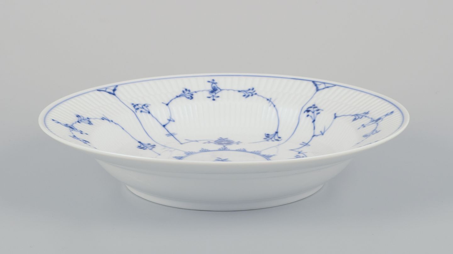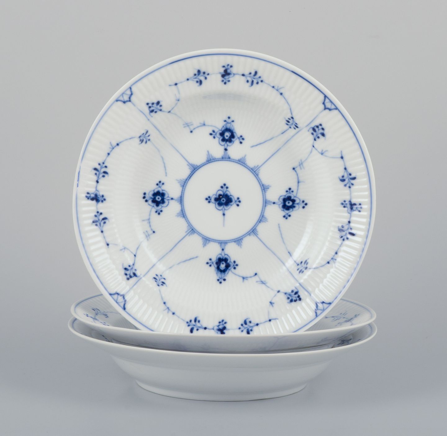 Royal Copenhagen Musselmalet Riflet. Tre dybe tallerkner i porcelæn.