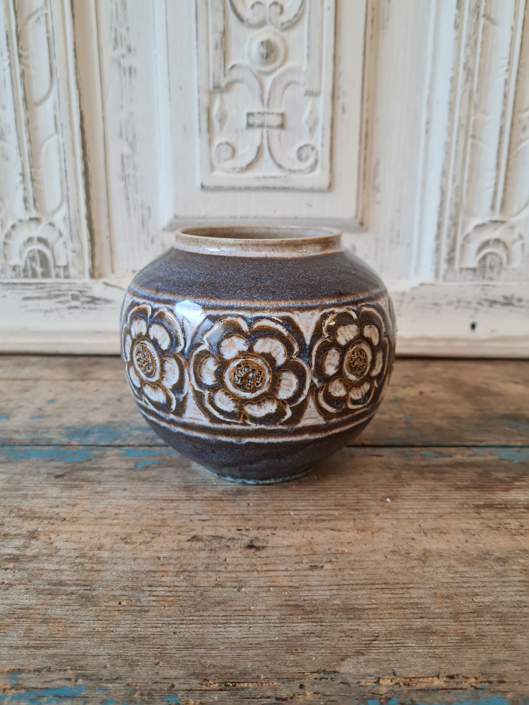 Jette Hellerøe keramik vase dekoreret med blomster