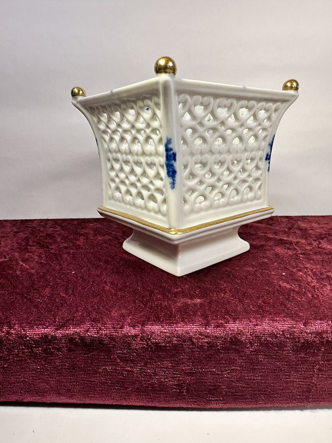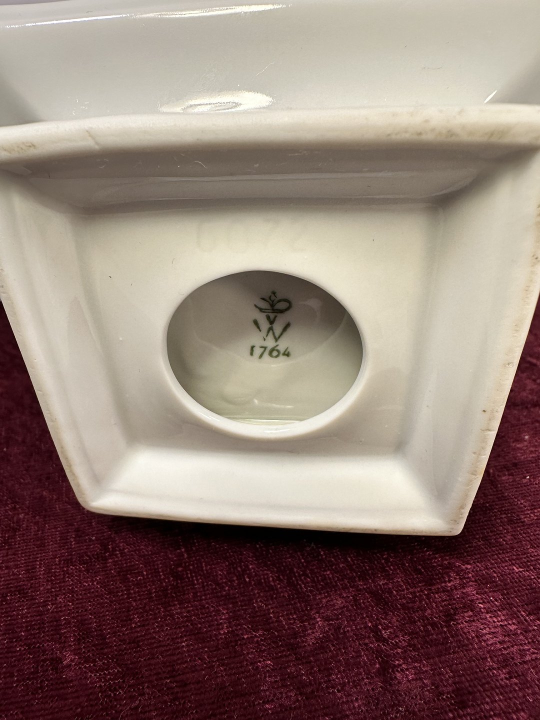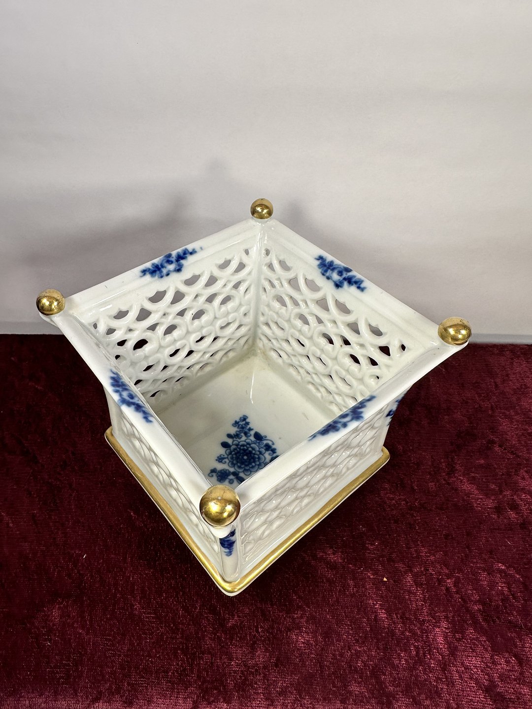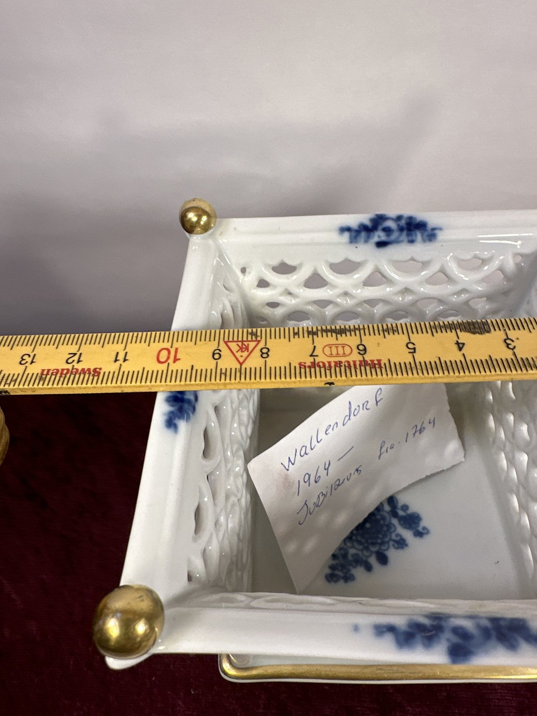 Tysk Wallendorfer porcelæn. Blå Blomst opsats med blondet sider.