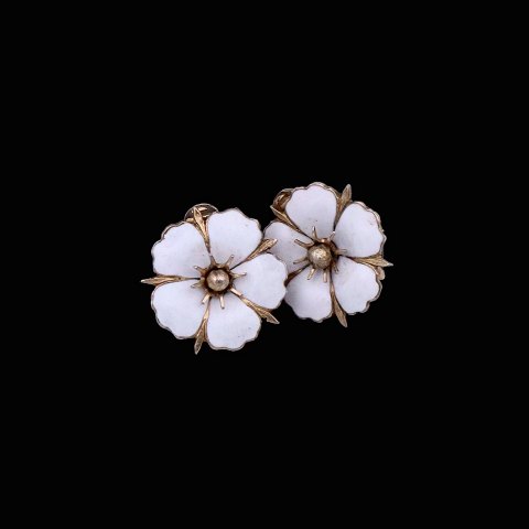 Peter Hertz. Øreklips i forgyldt sterling sølv med emalje.