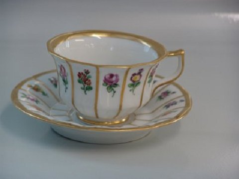Kgl. Henriette # 444- 8500 Kop og underkop (081-082) spise- og kaffestel fra Den kongelige Porcelænsfabrik . I fin og hel stand
