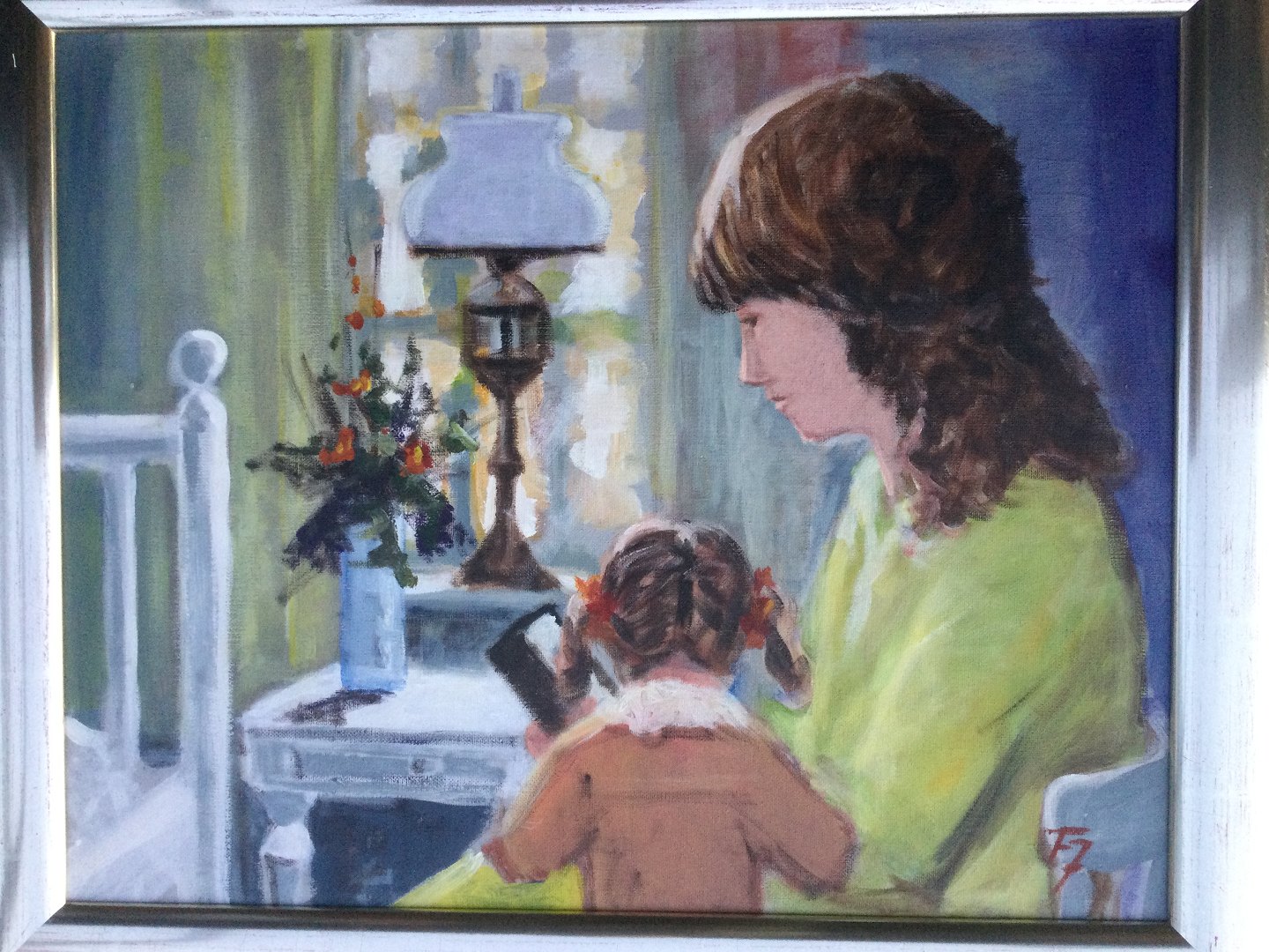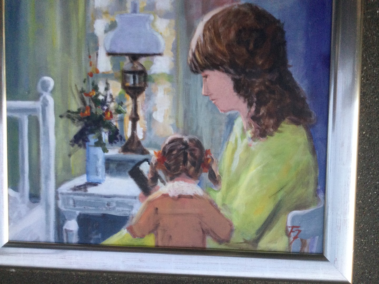 Maleri Finn Johansen - Mor og barn ved vindue.