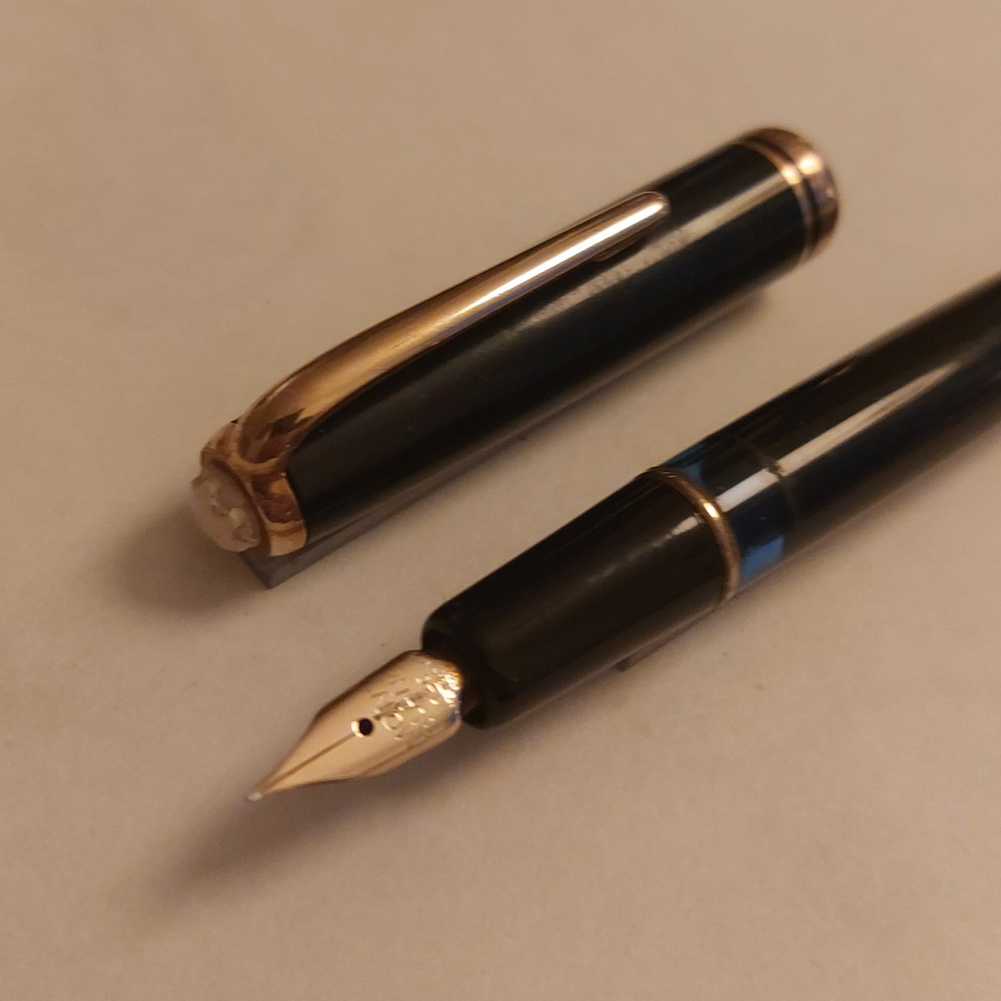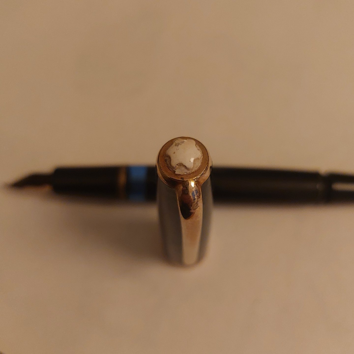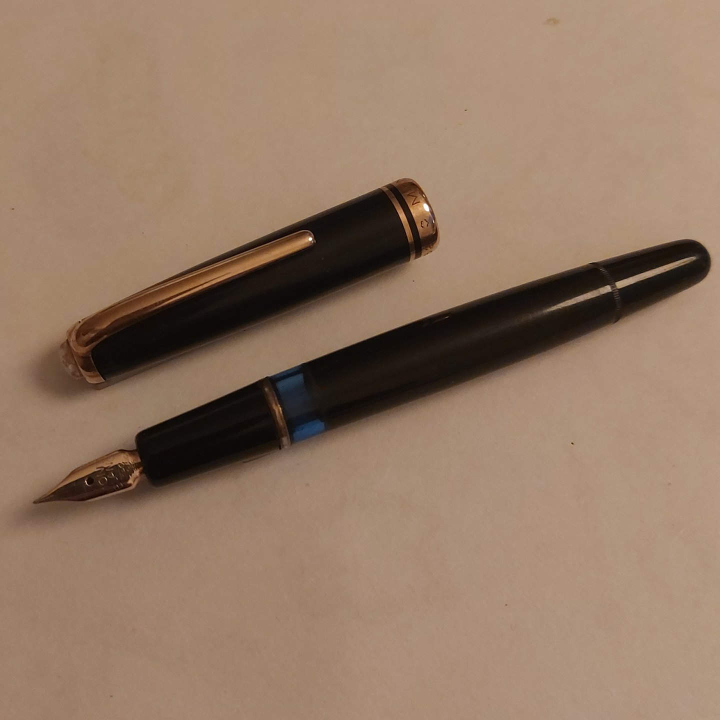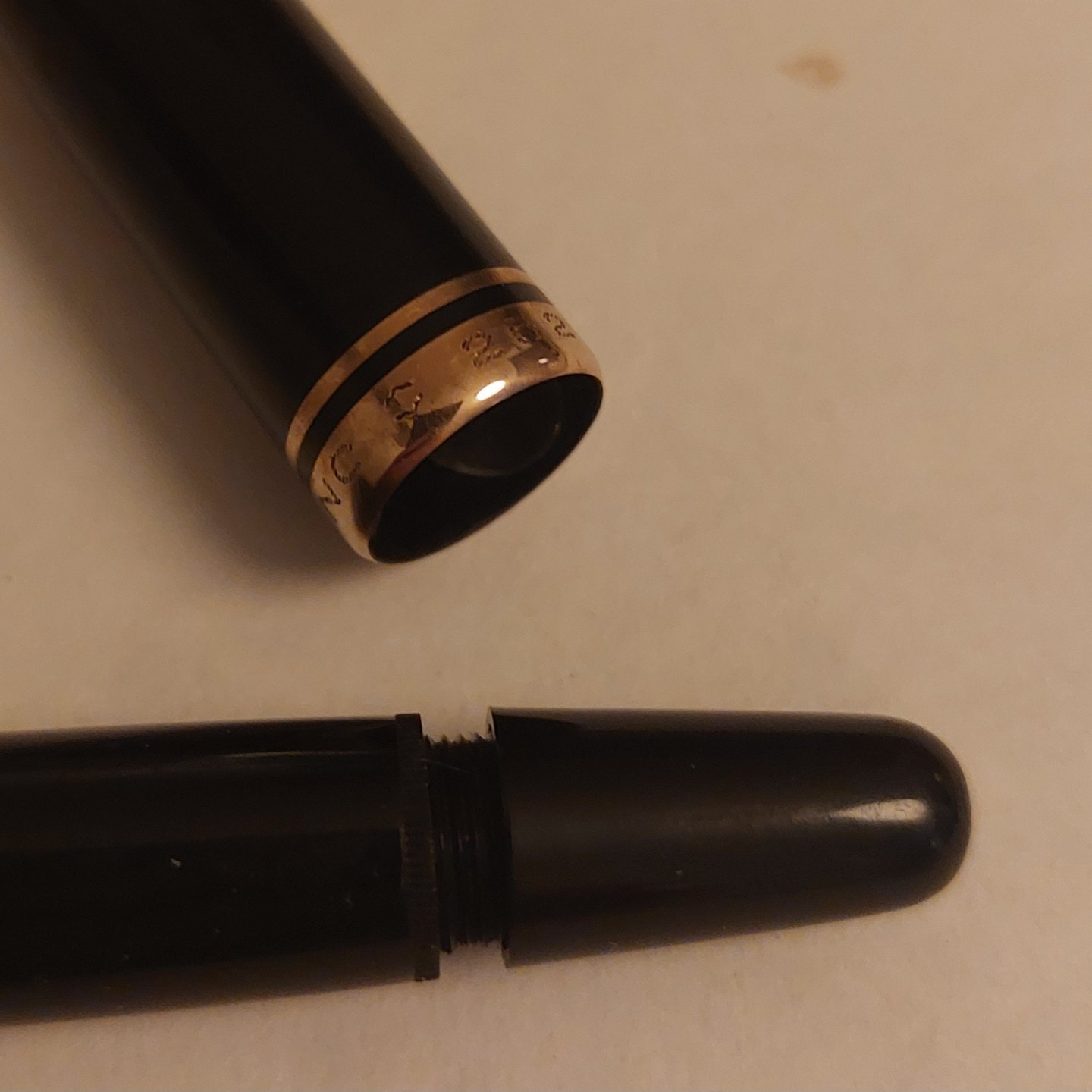 Sort Montblanc 252 fyldepen med piston blæk-påfylder. Fremstår I brugbar stand med velfungerende påfyldningsmekanisme. Der mangler en lille sort krave, der sidder på toppen af hætten omkring stjernen. Eller intet at bemærke. Alle dele er originale Montblanc dele fra perioden hvor fyldepennen er produceret. L. 12,5 cm