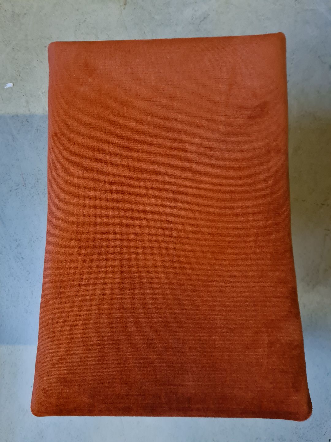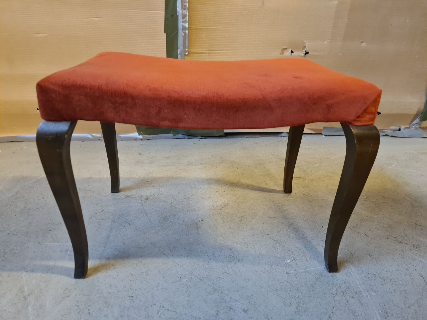 Skammel i egetræ med velourbetræk, fra 1940erne.