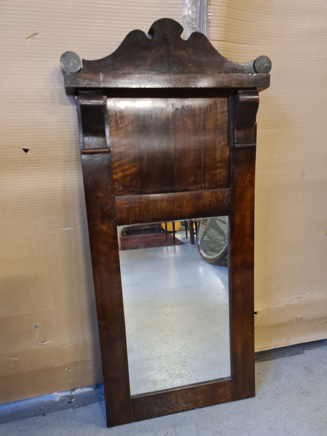 Spejl i fineret mahogni, fra 1890erne.