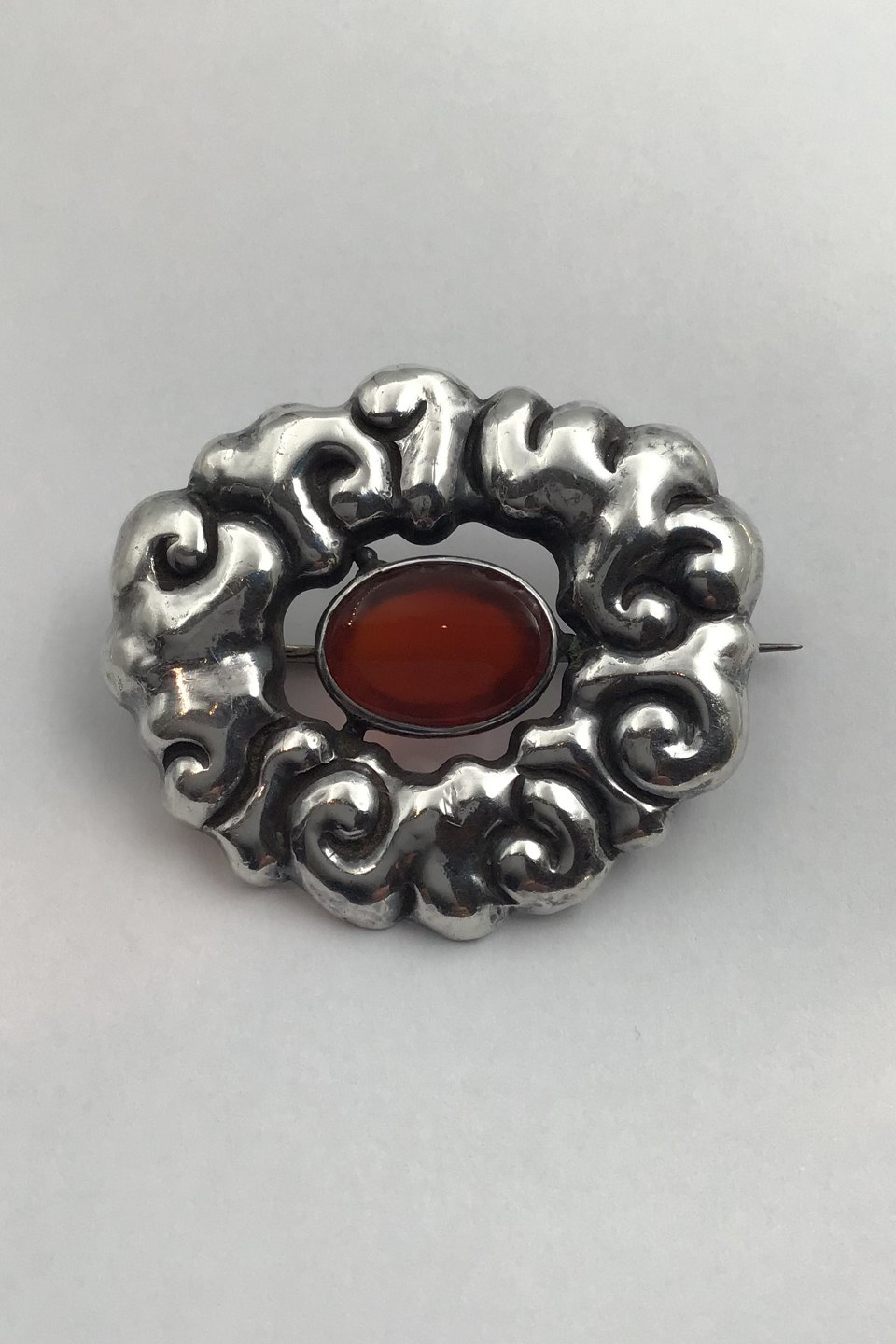 Thorvald Bindesbøll / Holger Kyster Sølv Broche med Rav
