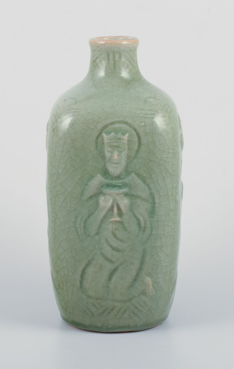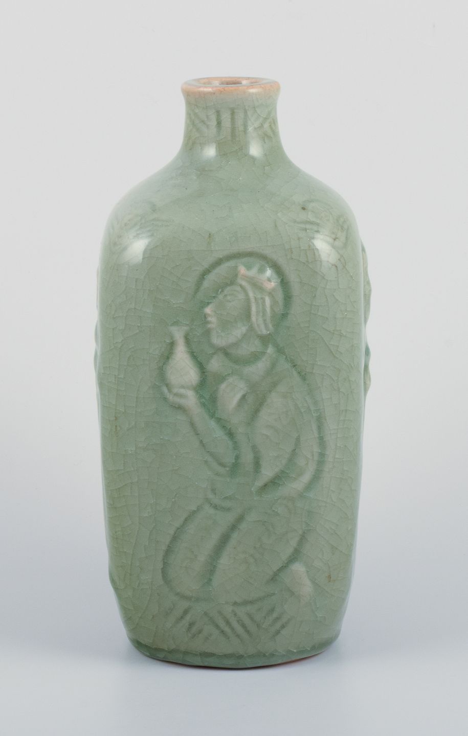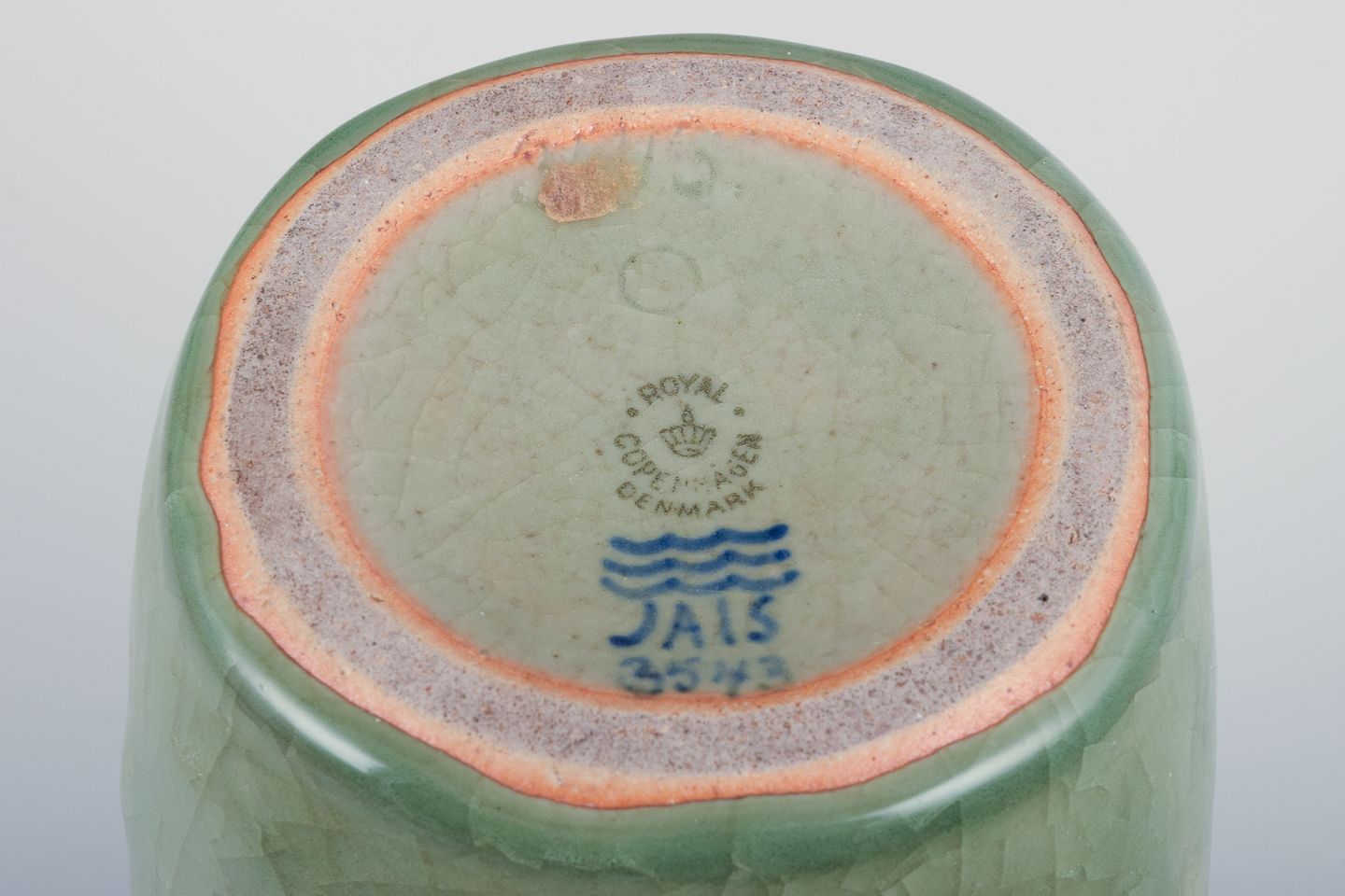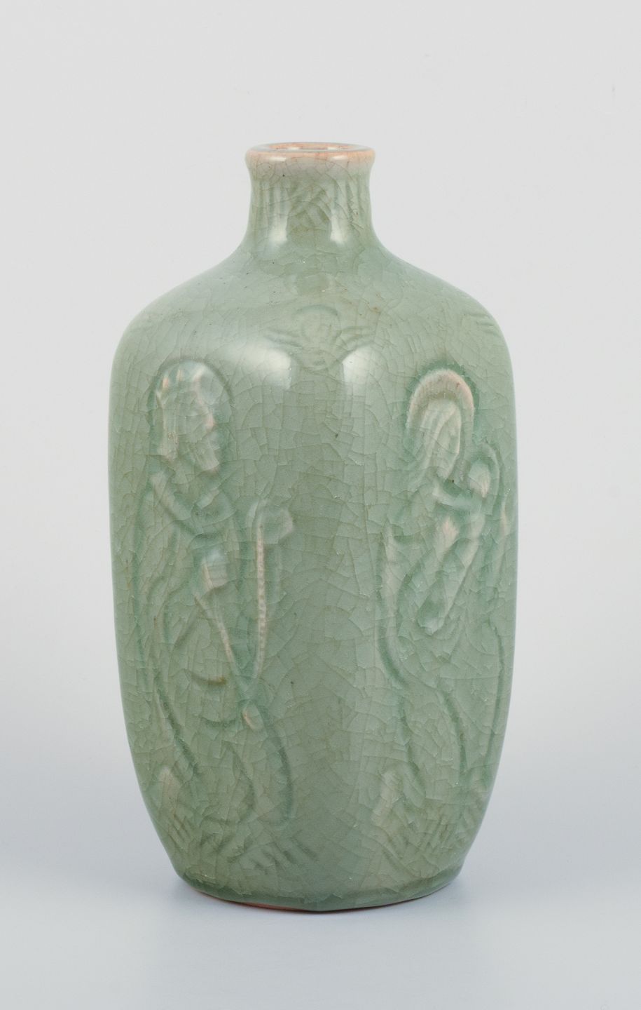 Jais Nielsen for Royal Copenhagen. Keramikvase i celadon glasur. Religiøse motiver.