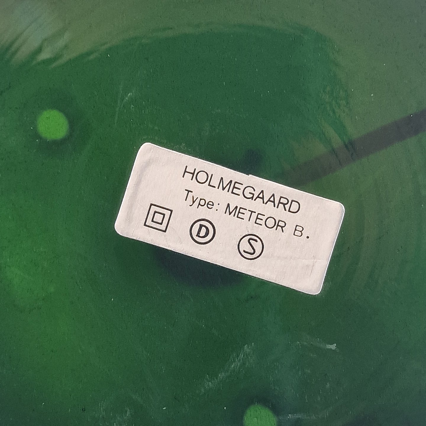 Mundblæst lampe af grønt glas med 5 dekorative huller i.