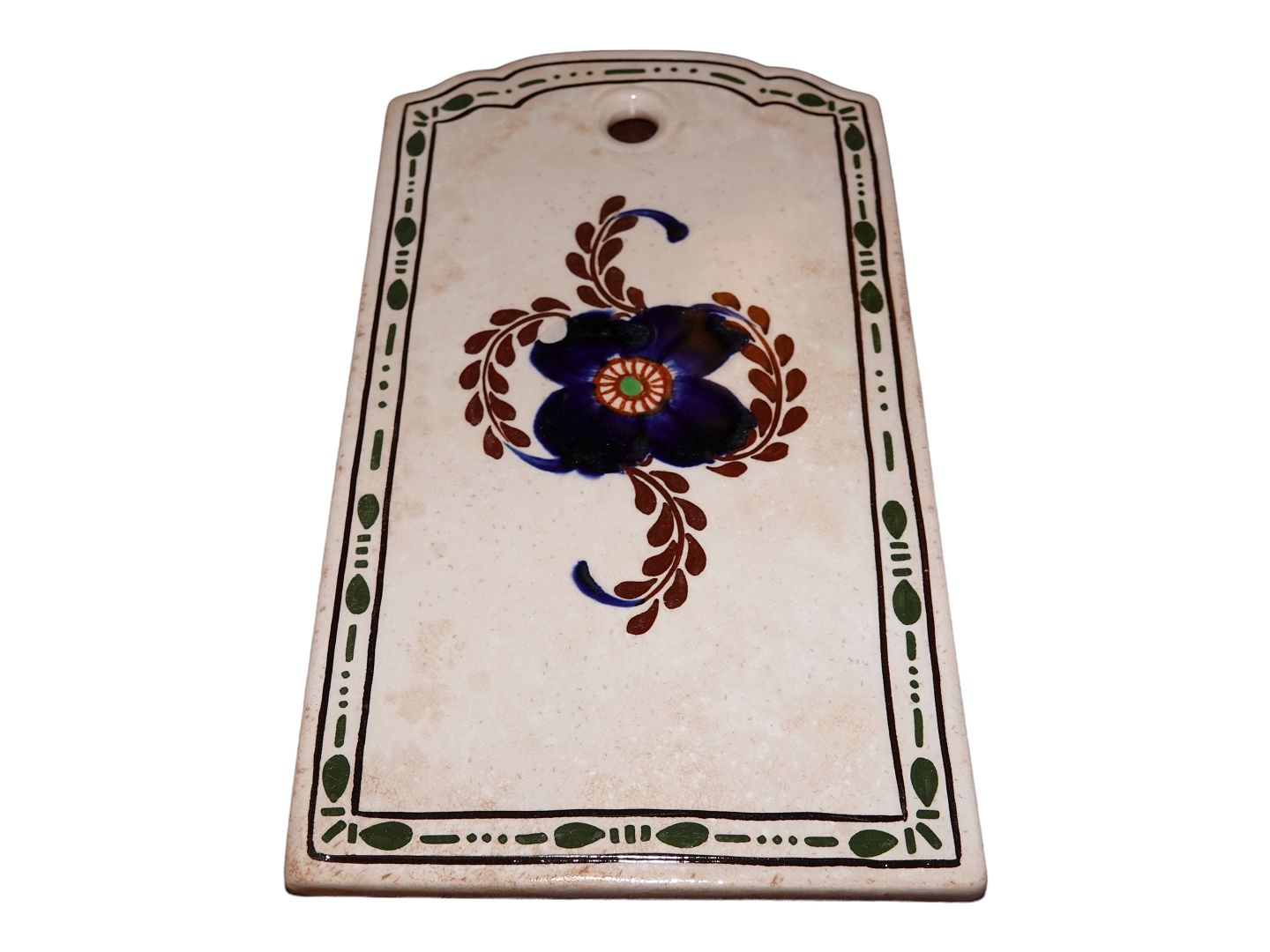 Aluminia Frøken Heibergs Blå Blomst, stort firkantet smørbræt med hul til ophæng.