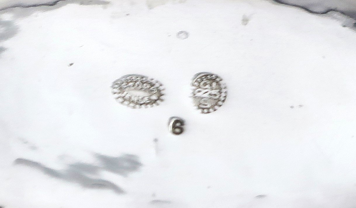 Georg Jensen. Sølv skål på oval fod. Design no. 6. Højde 13 cm. Diameter 16 cm. Produceret 1915-1930.