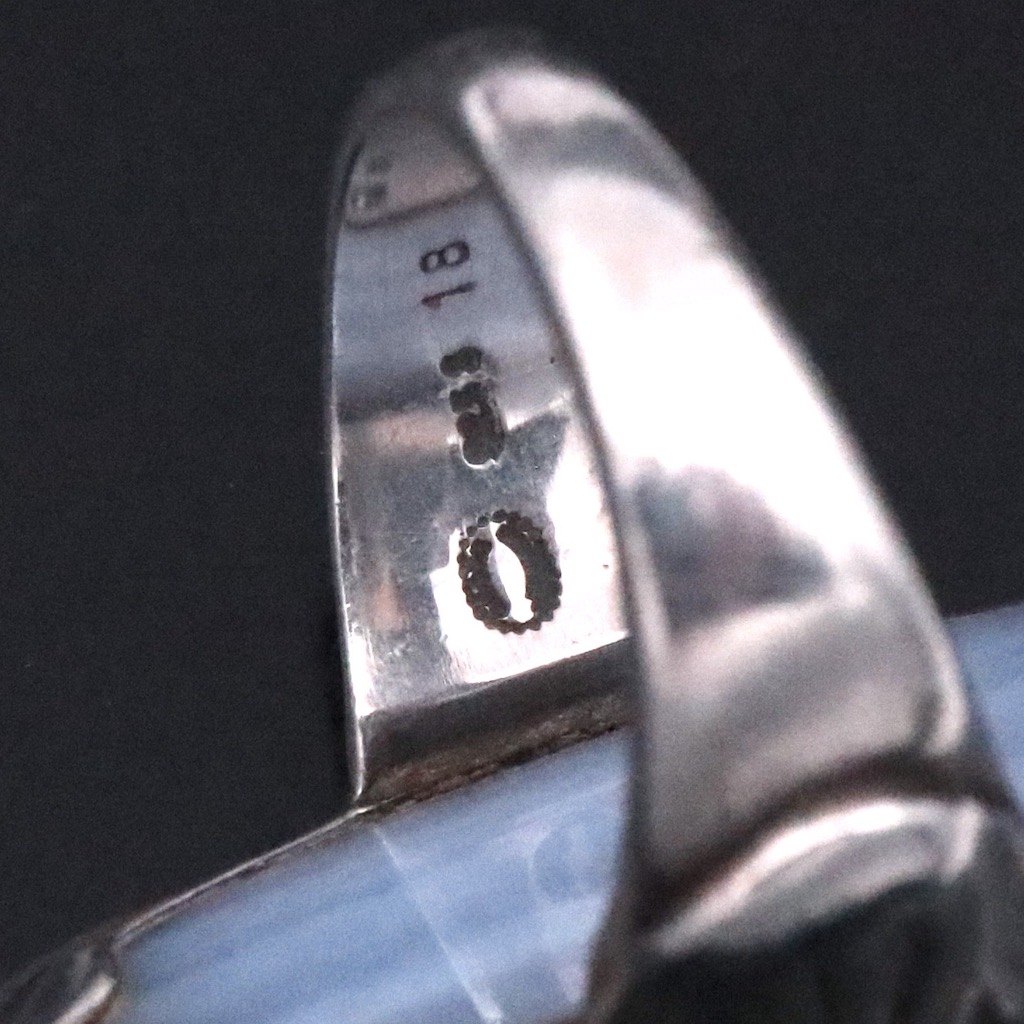 Text zugänglich auf Dänische: Georg Jensen. Ring i sterlingsølv med kalcedon #18 - Moonlight Blossom.