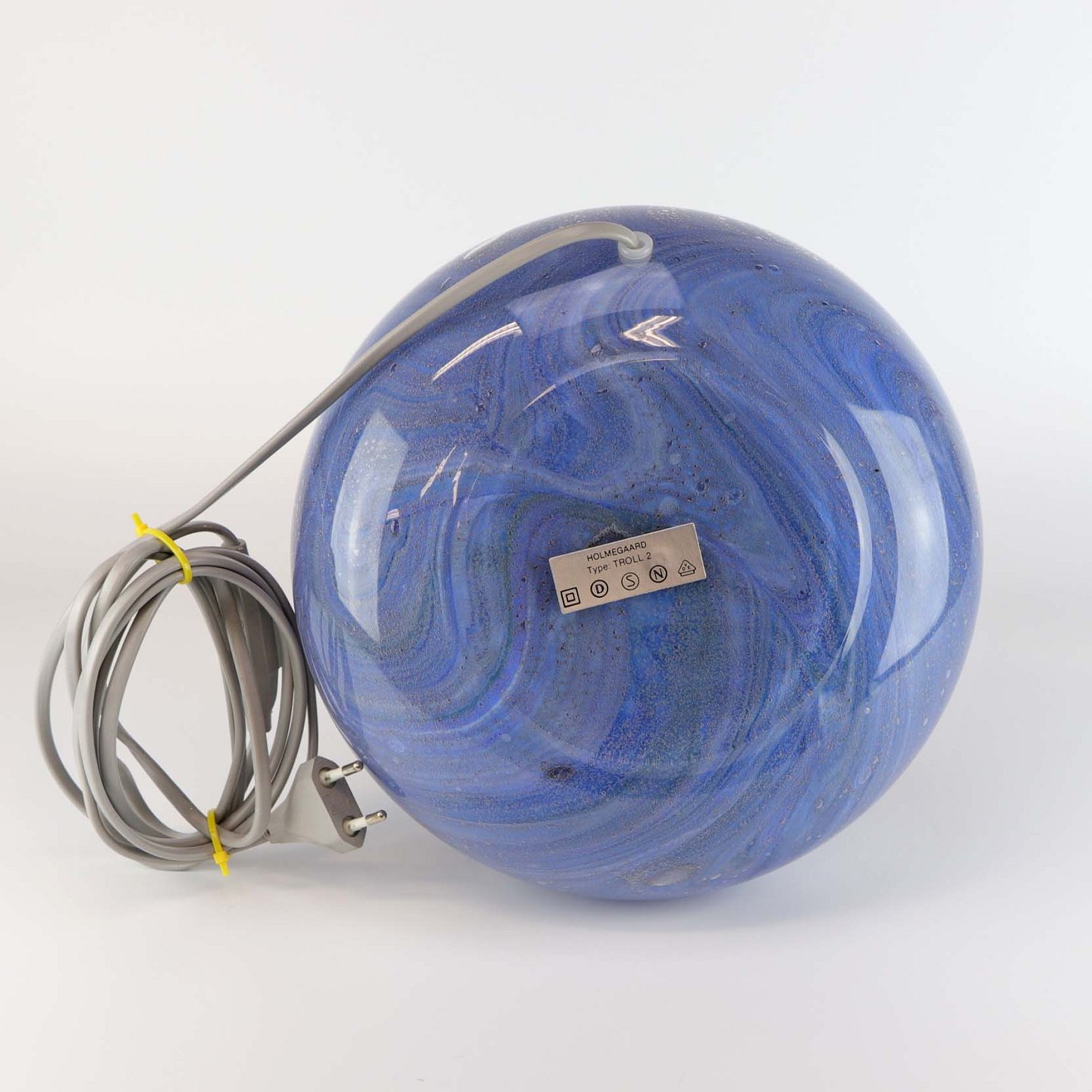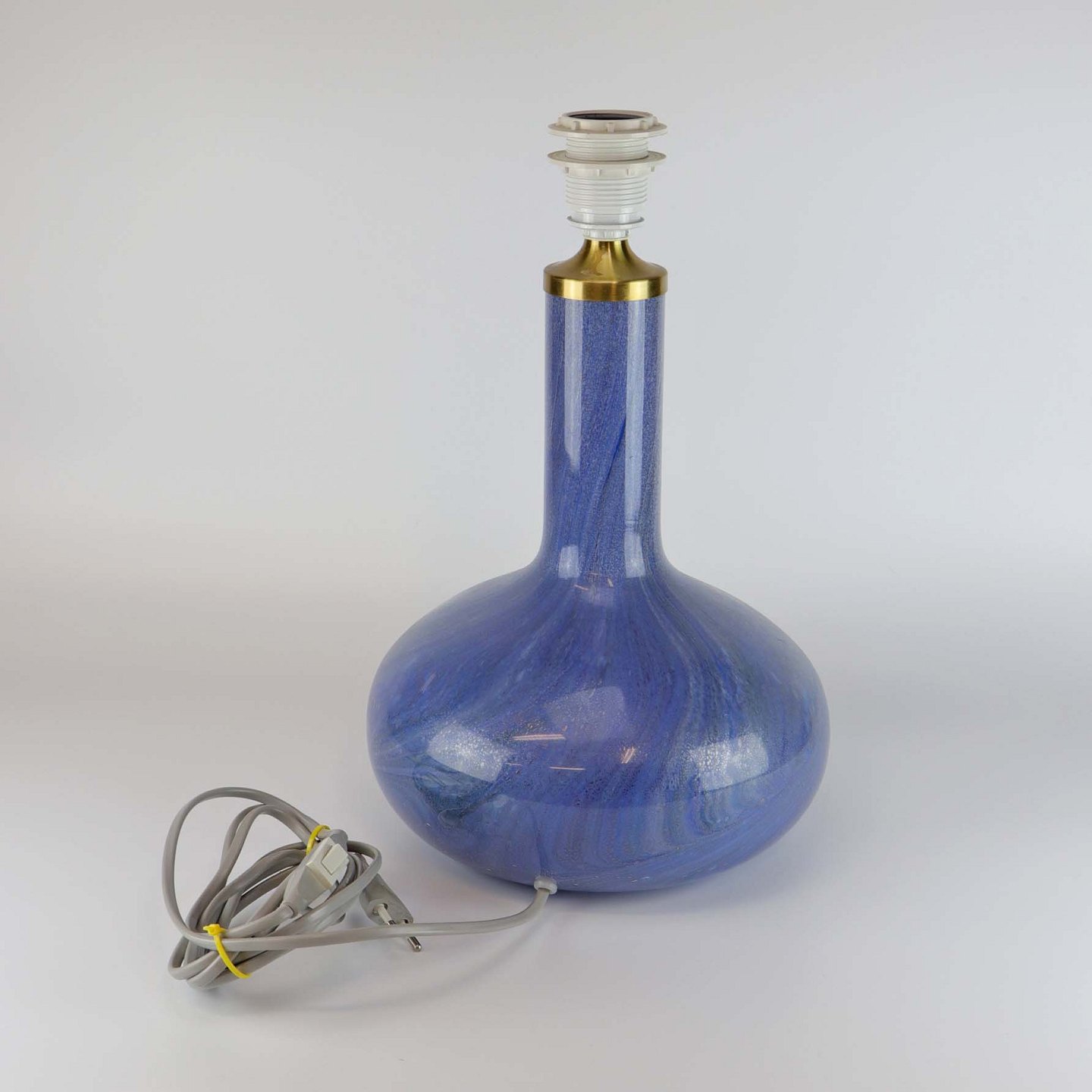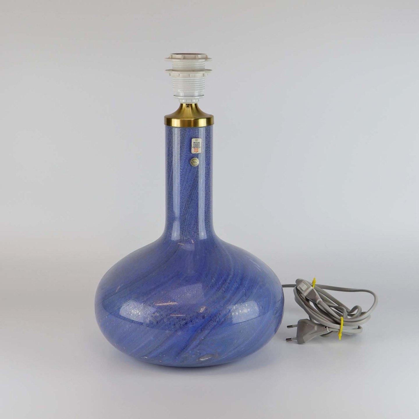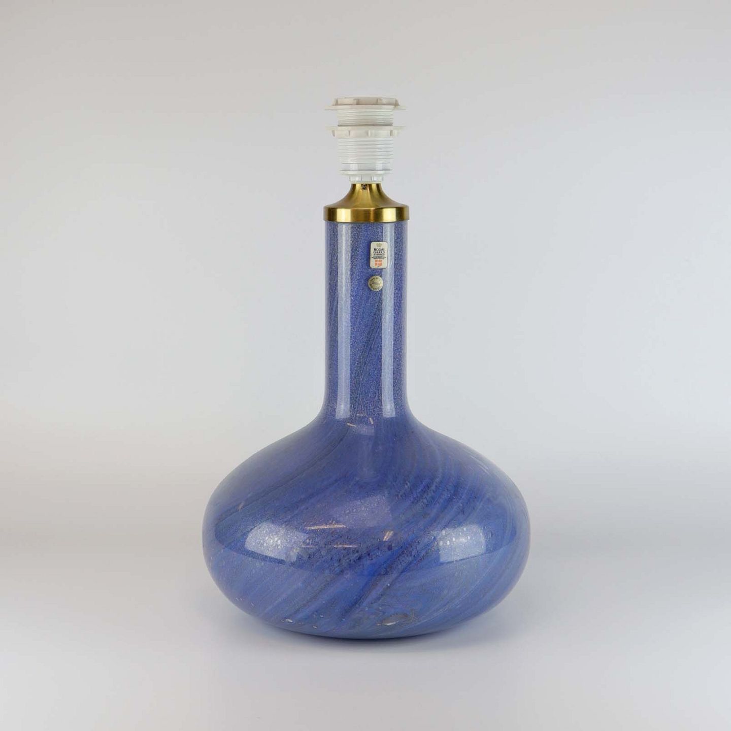 Mundblæst bordlampe i grå og blå farvet glas med 24% krystal