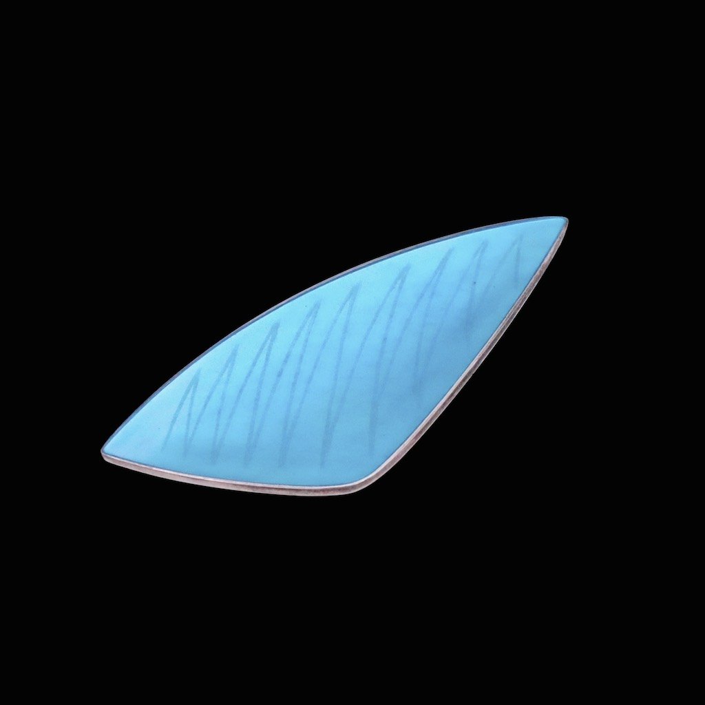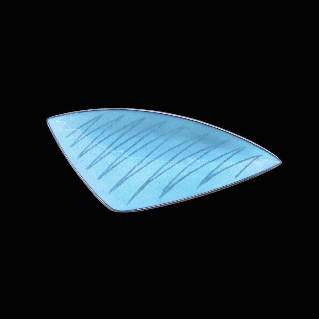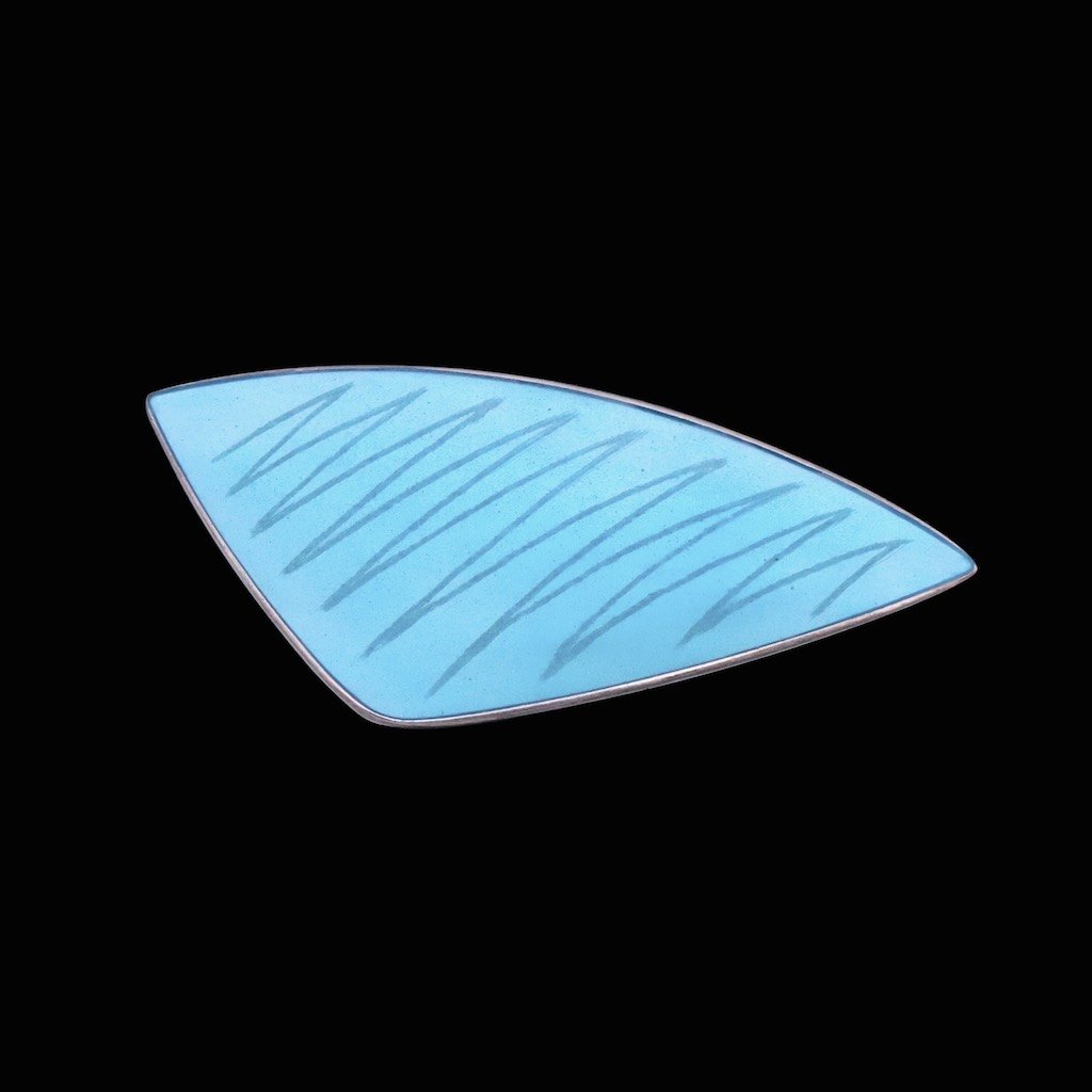 Eigil Jensen for Anton Michelsen. Broche i sterling sølv med blå emalje.