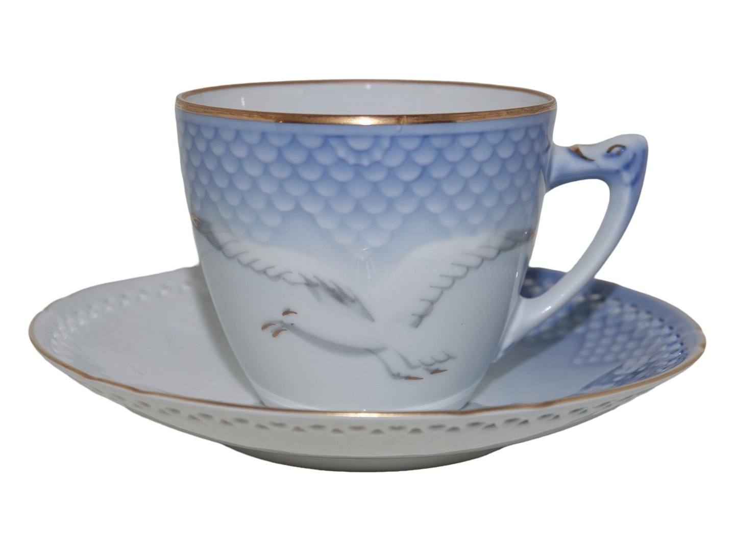 Bing & Grøndahl Måge med guldkant og gennembrudt kant, kaffekop med tilhørende underkop.
