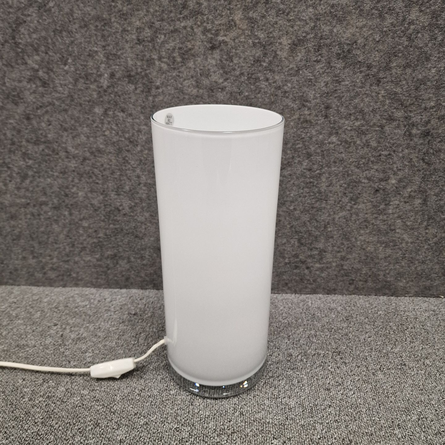 Bordlampe af mundblæst hvidt glas. Størrelse Stor og sjældent set