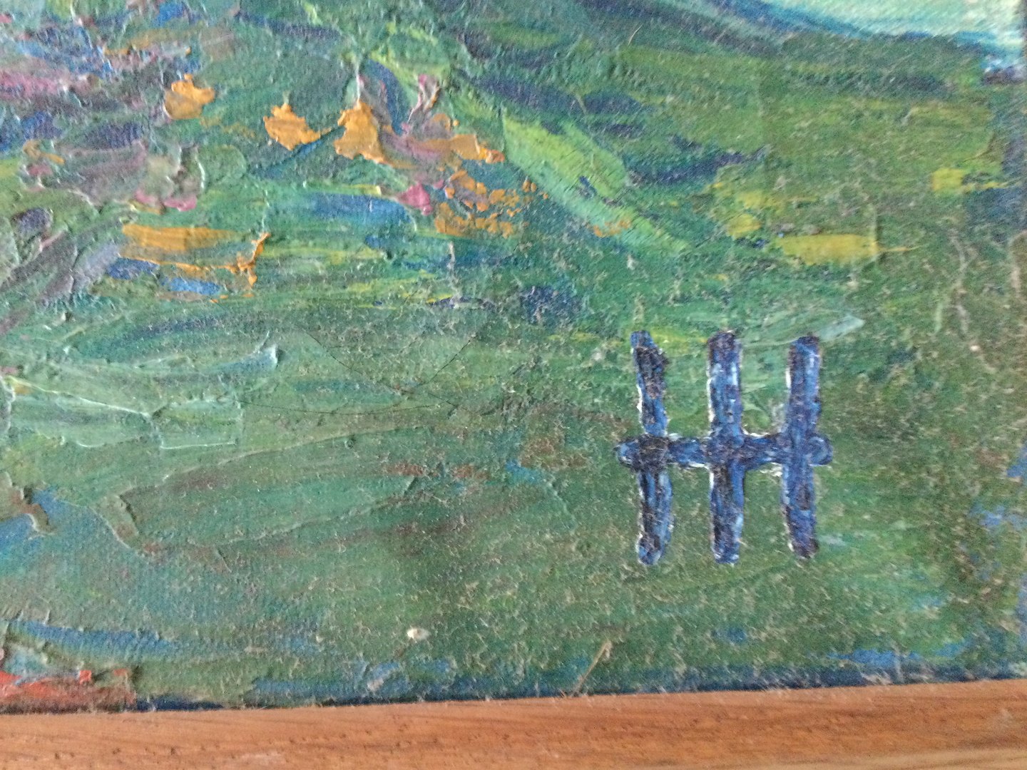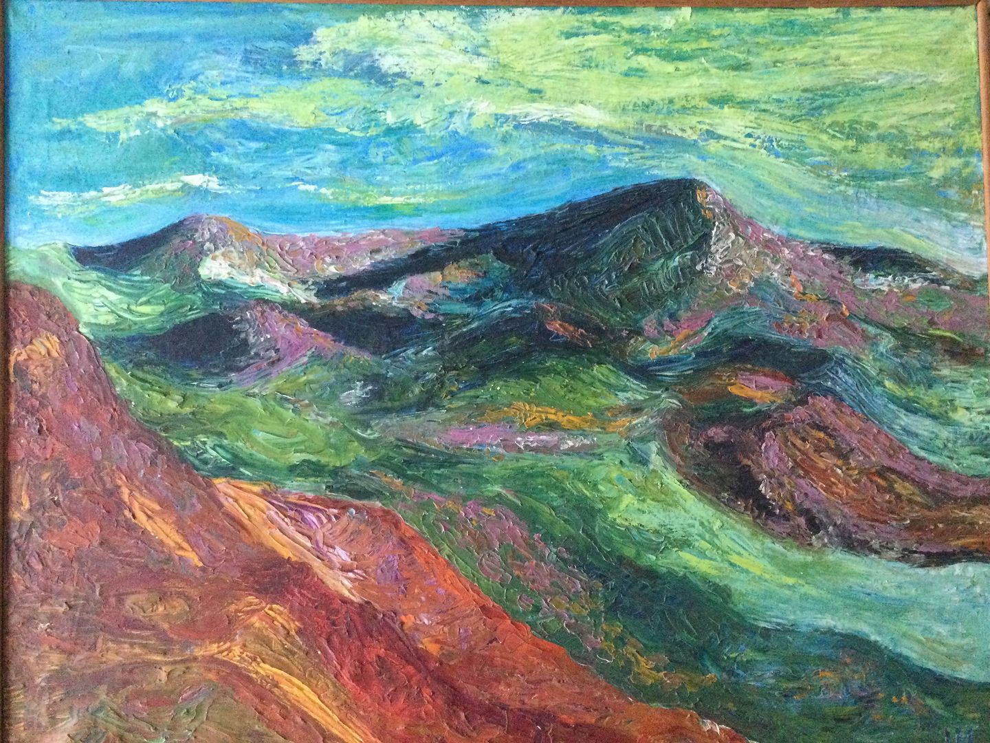 Maleri af Hanne Hedegart 1973 - Eroderede bjerge, Thailand.