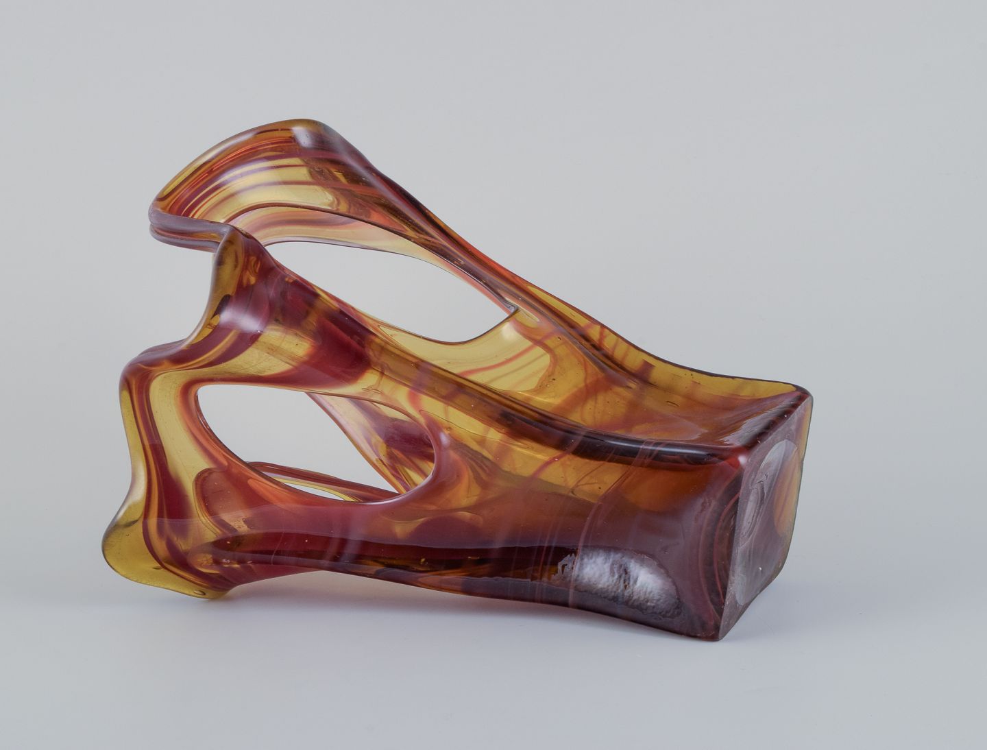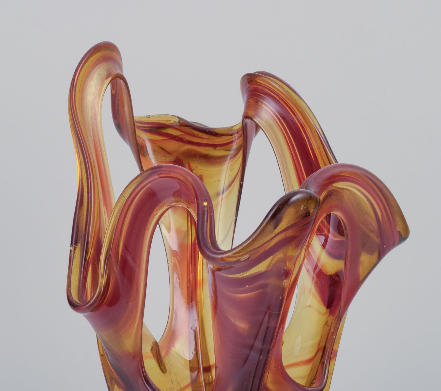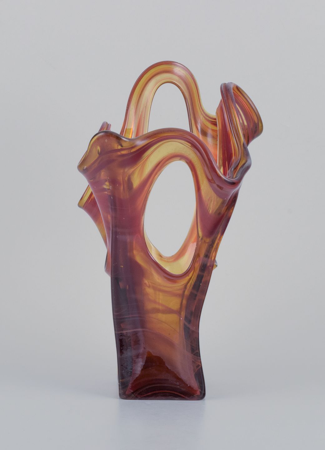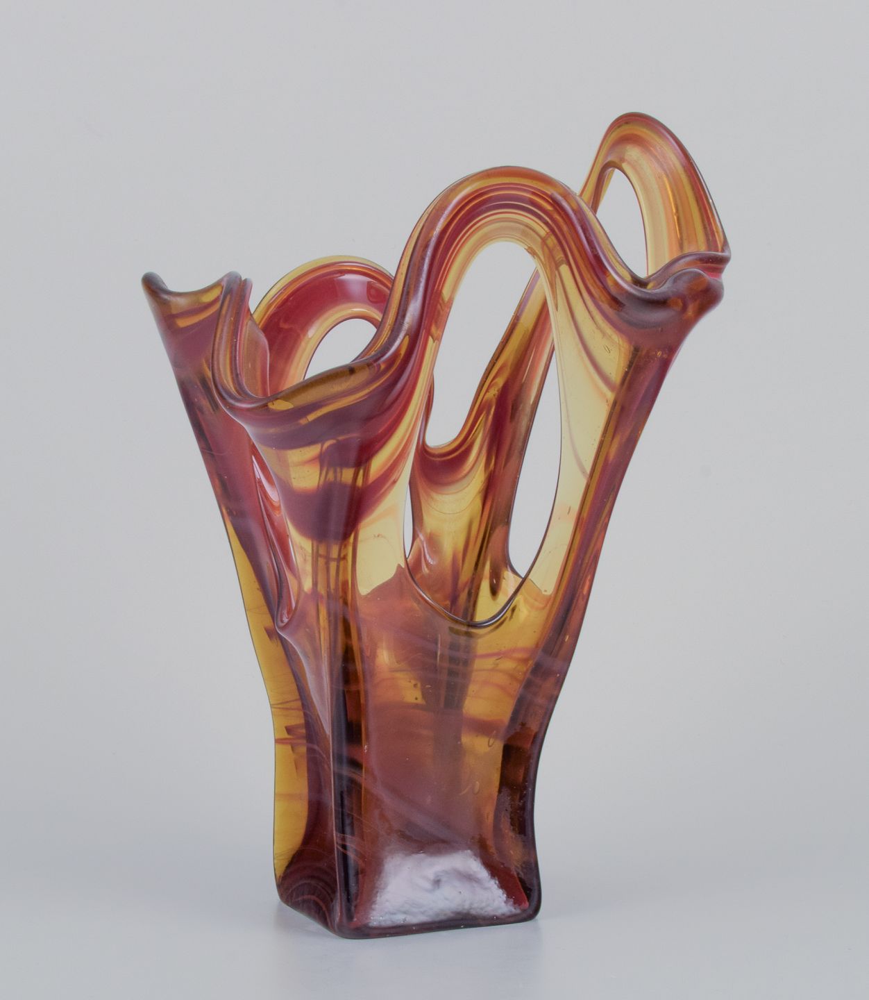 Europæisk glaskunstner. Stor kunstglasvase. Ravfarvet.